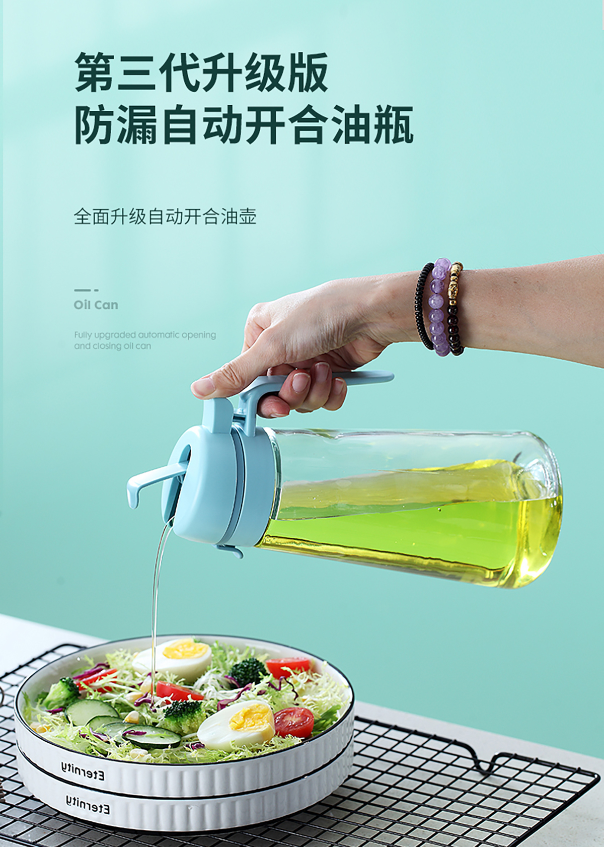 可靈自動(dòng)開合玻璃油壺(350ml/650ml/850ml)
