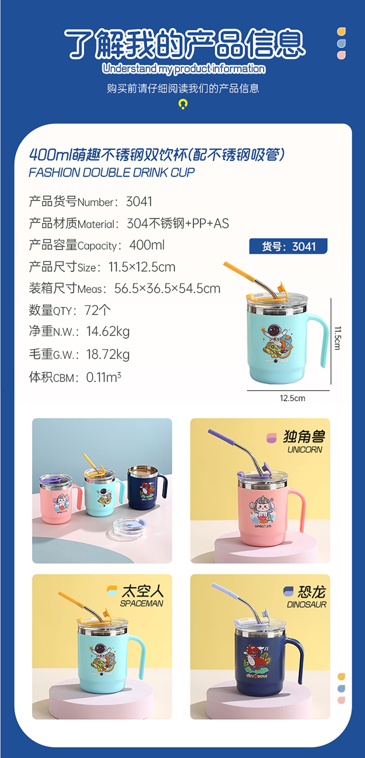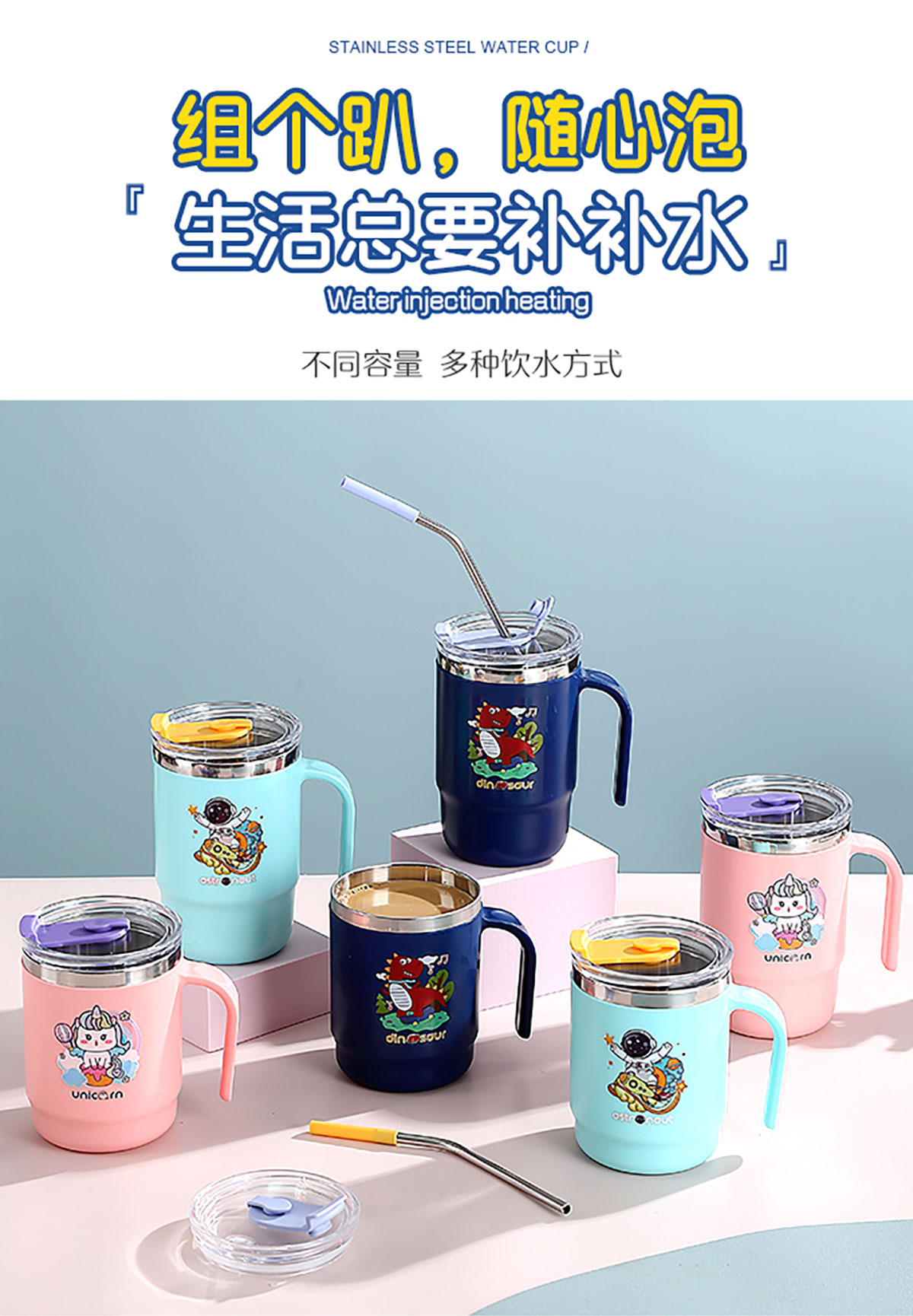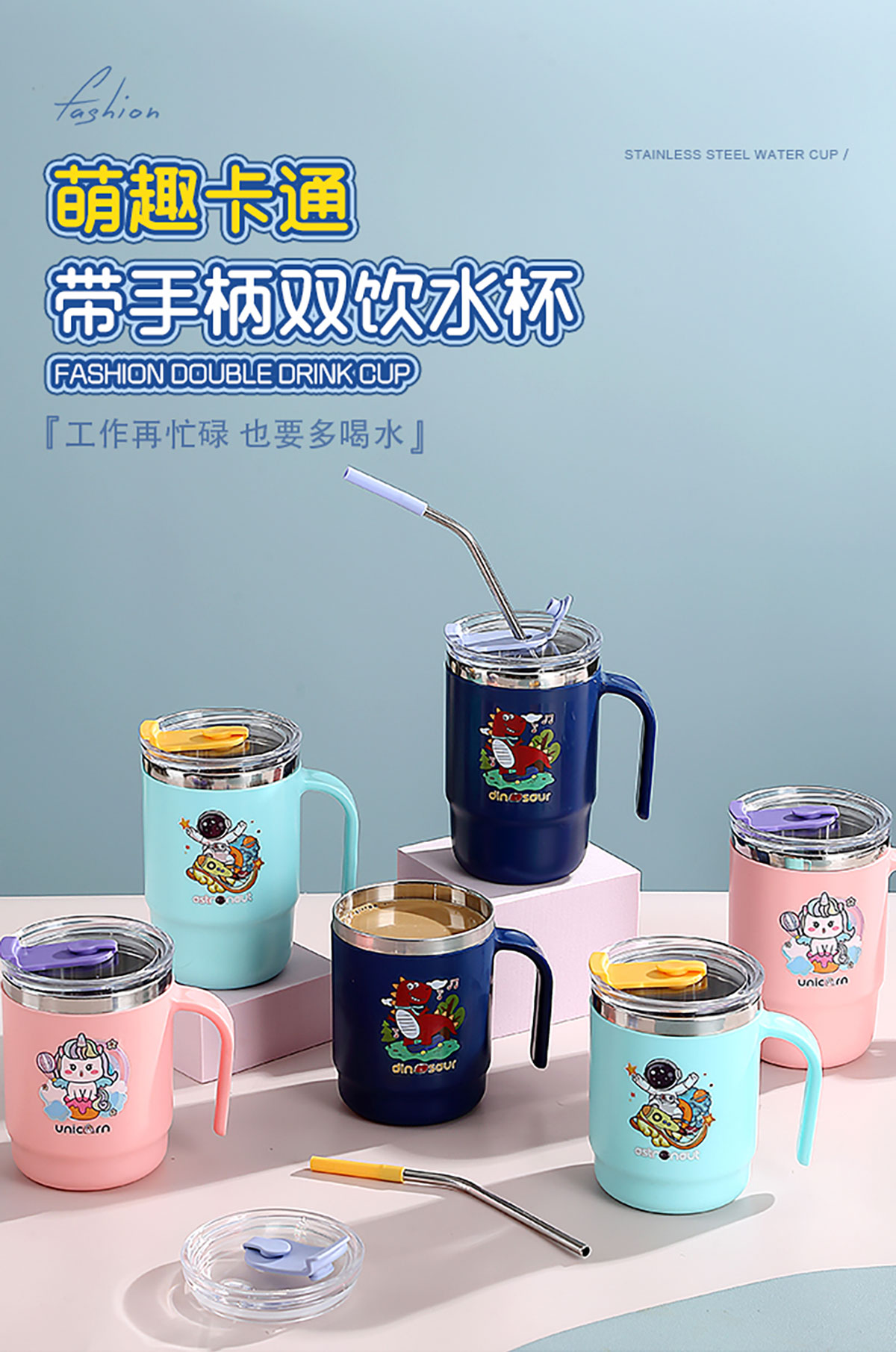 400ml/500ml萌趣不銹鋼雙飲杯(配不銹鋼吸管)