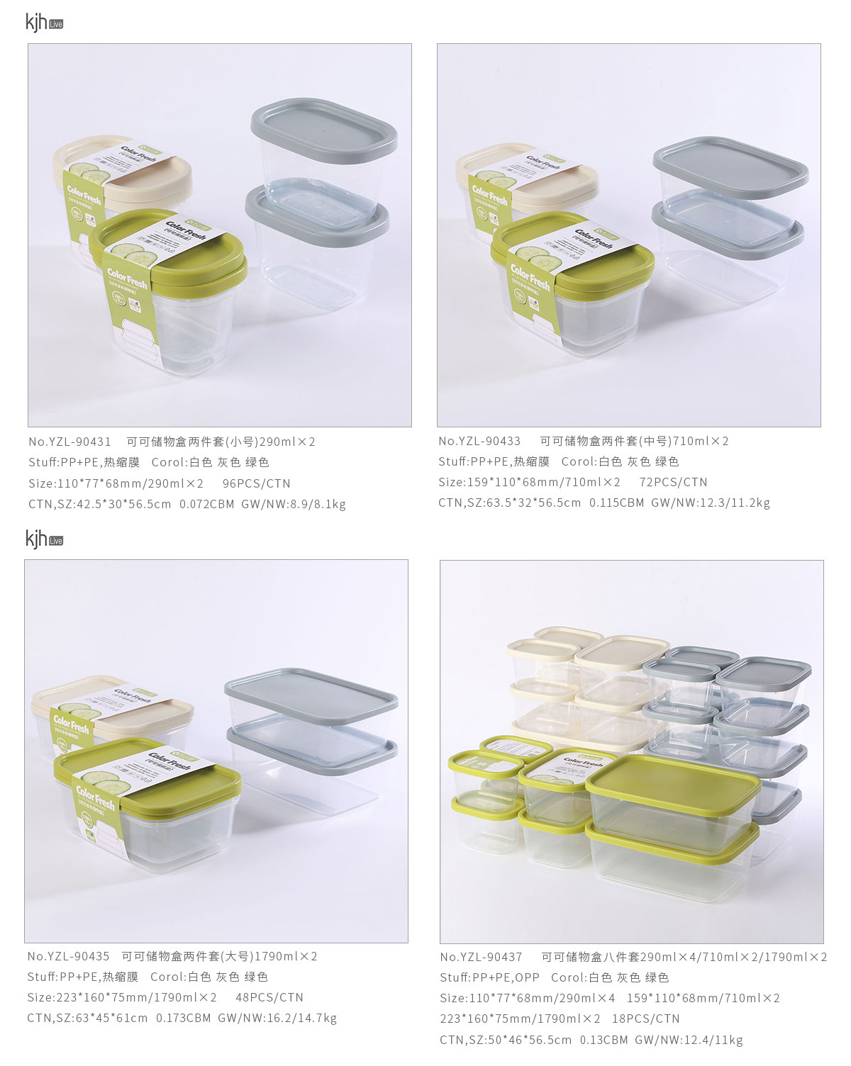 可可儲(chǔ)物盒兩件套(290ml小號/710ml中號/1790ml大號)/八件套