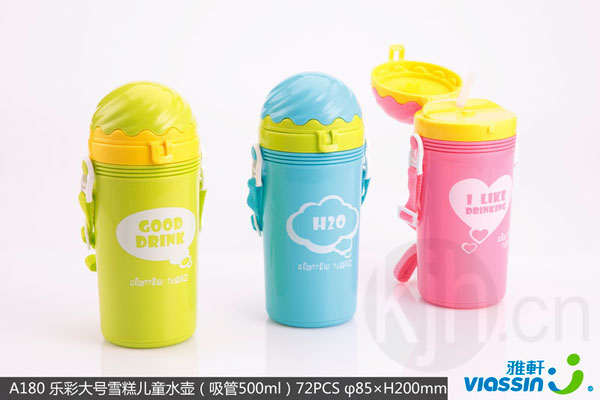樂彩大號(hào)雪糕兒童水壺(吸管500ml)