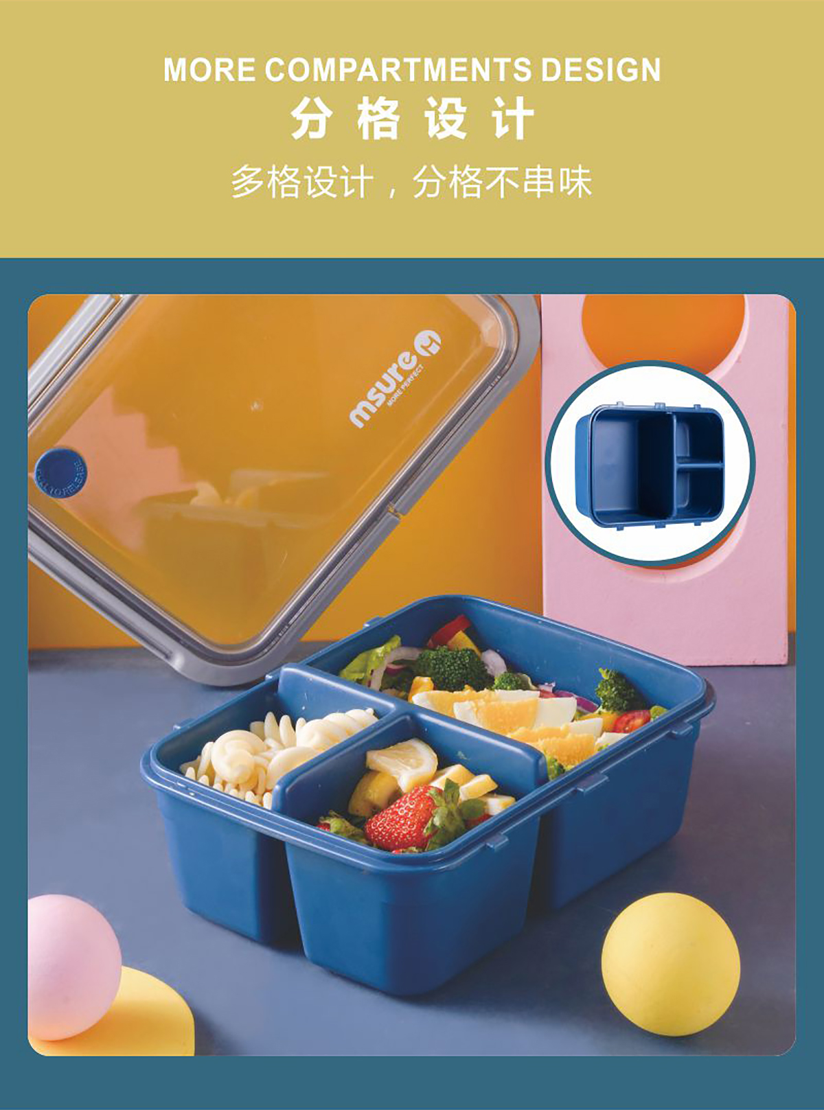扣拉田園密封飯盒(三格)1.2L