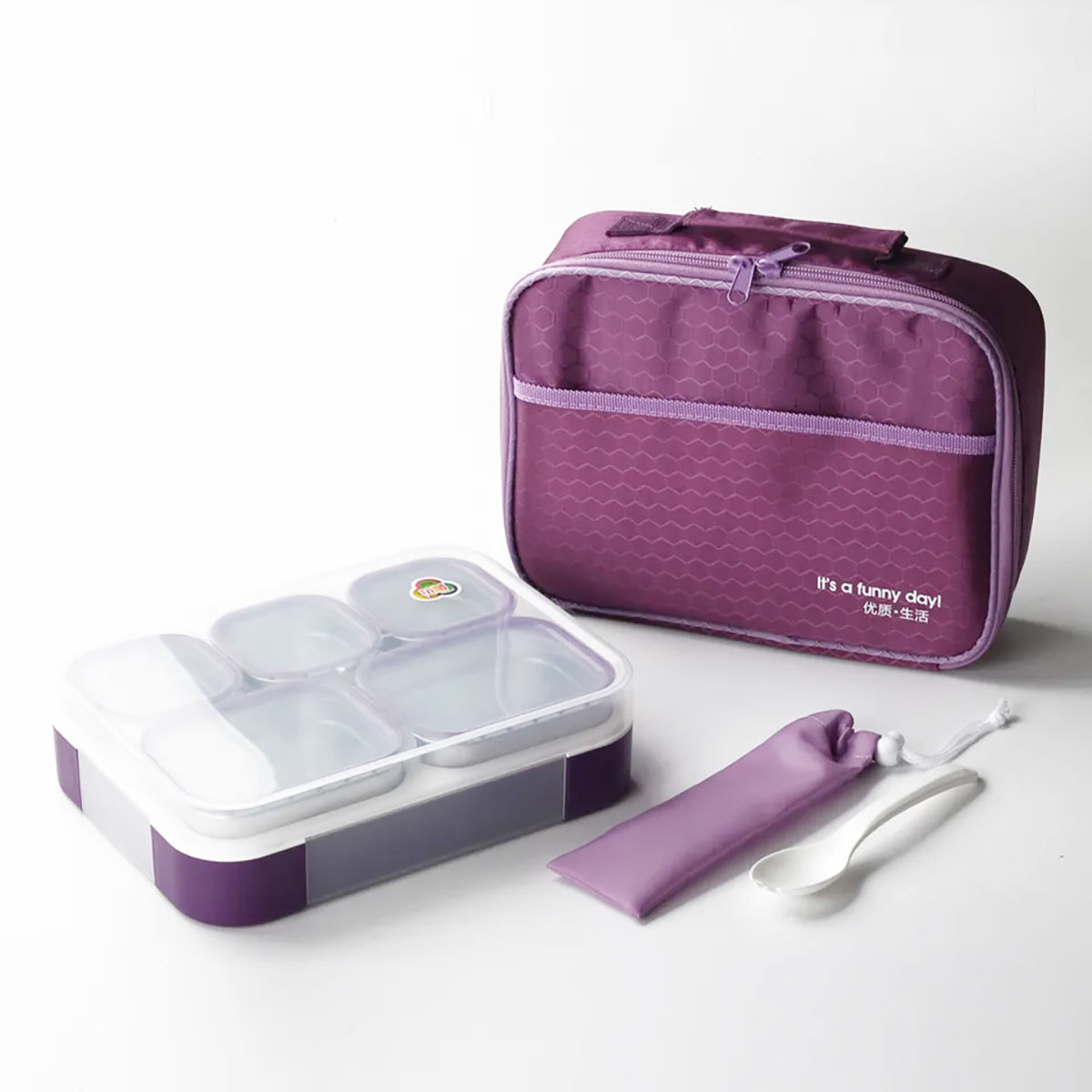 悠悅隨心活動五格不銹鋼便當(dāng)盒(1000ml)配塑料勺子