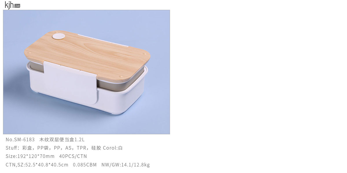 木紋雙層便當盒1.2L