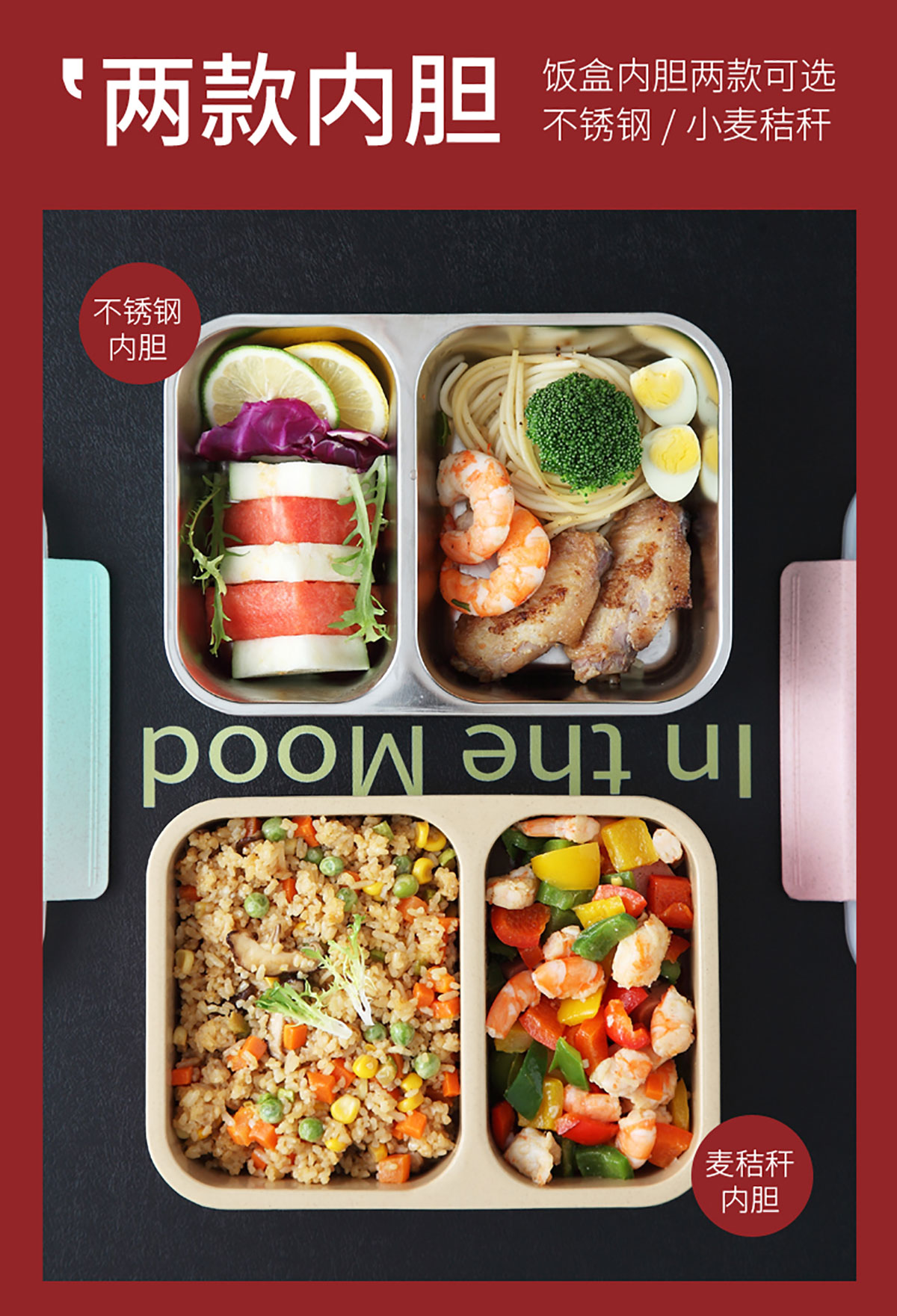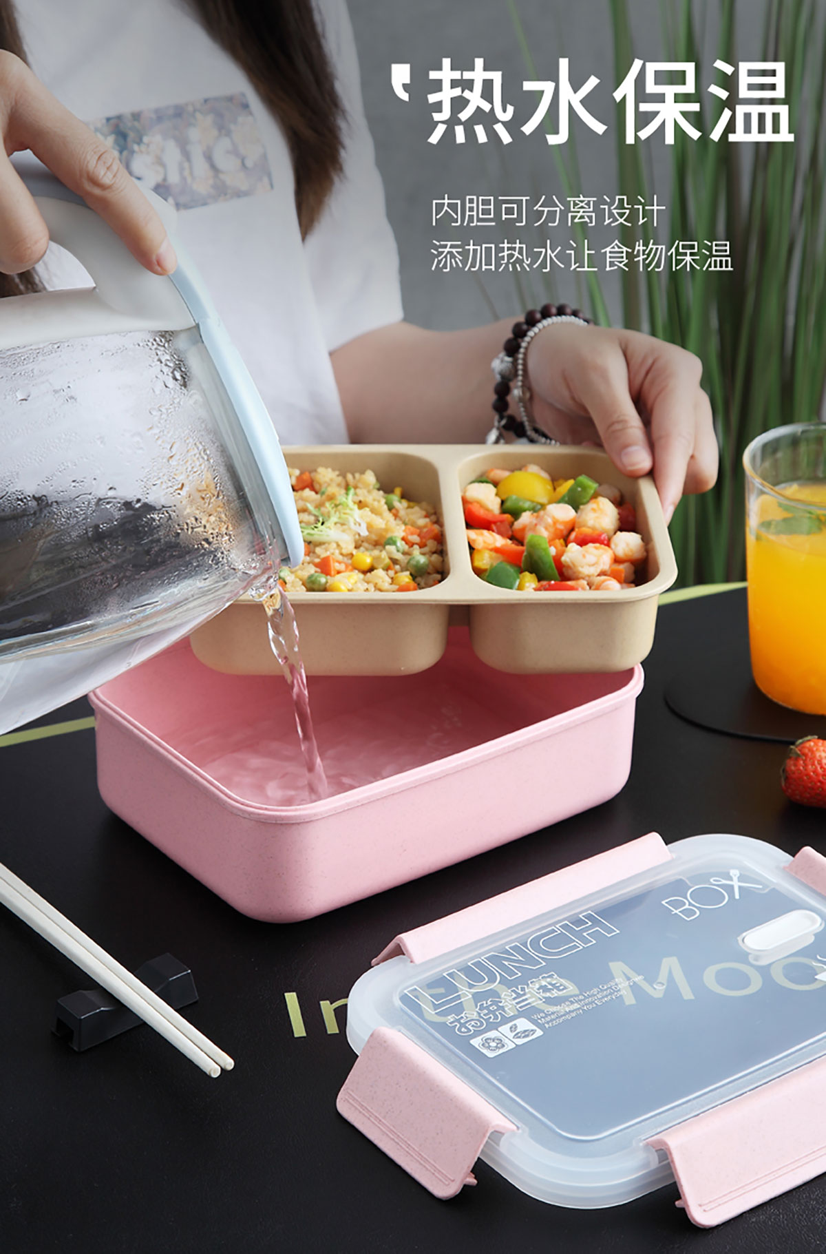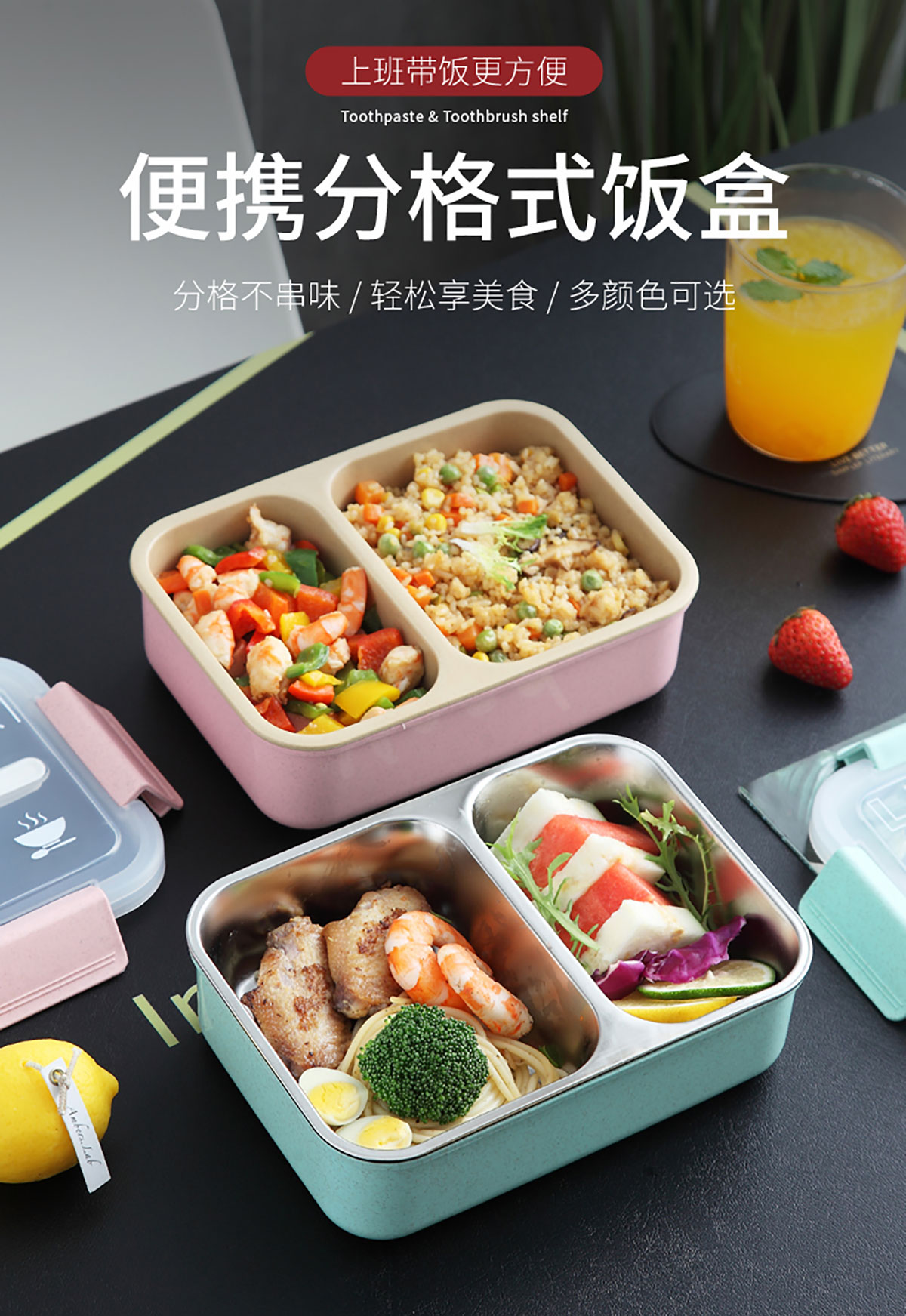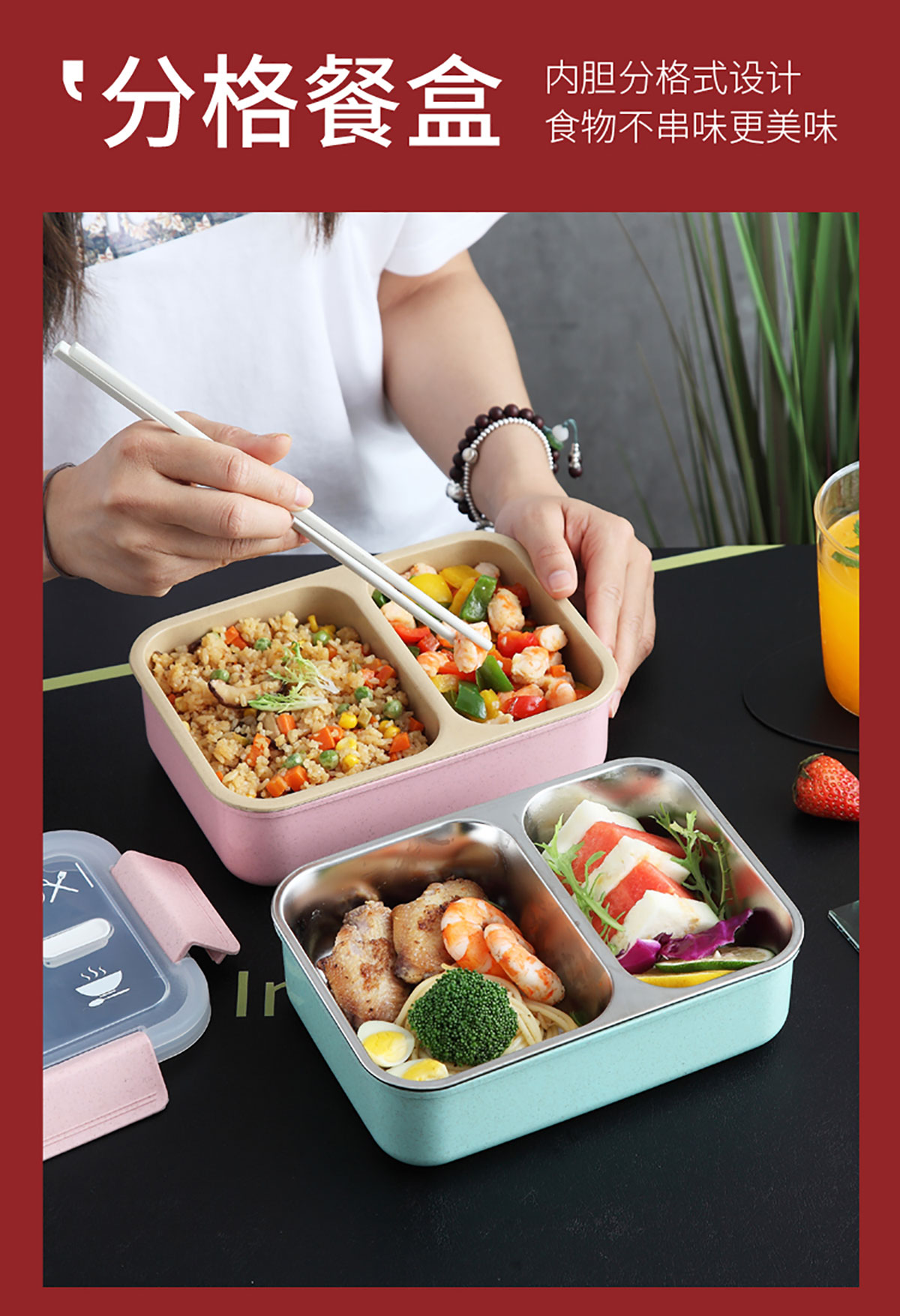 麥秸分格/分格201不銹鋼便當盒