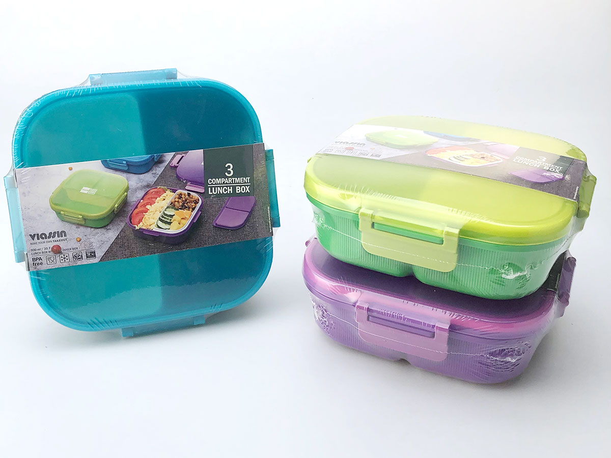 紋彩密封3格飯盒(正方形900ml)