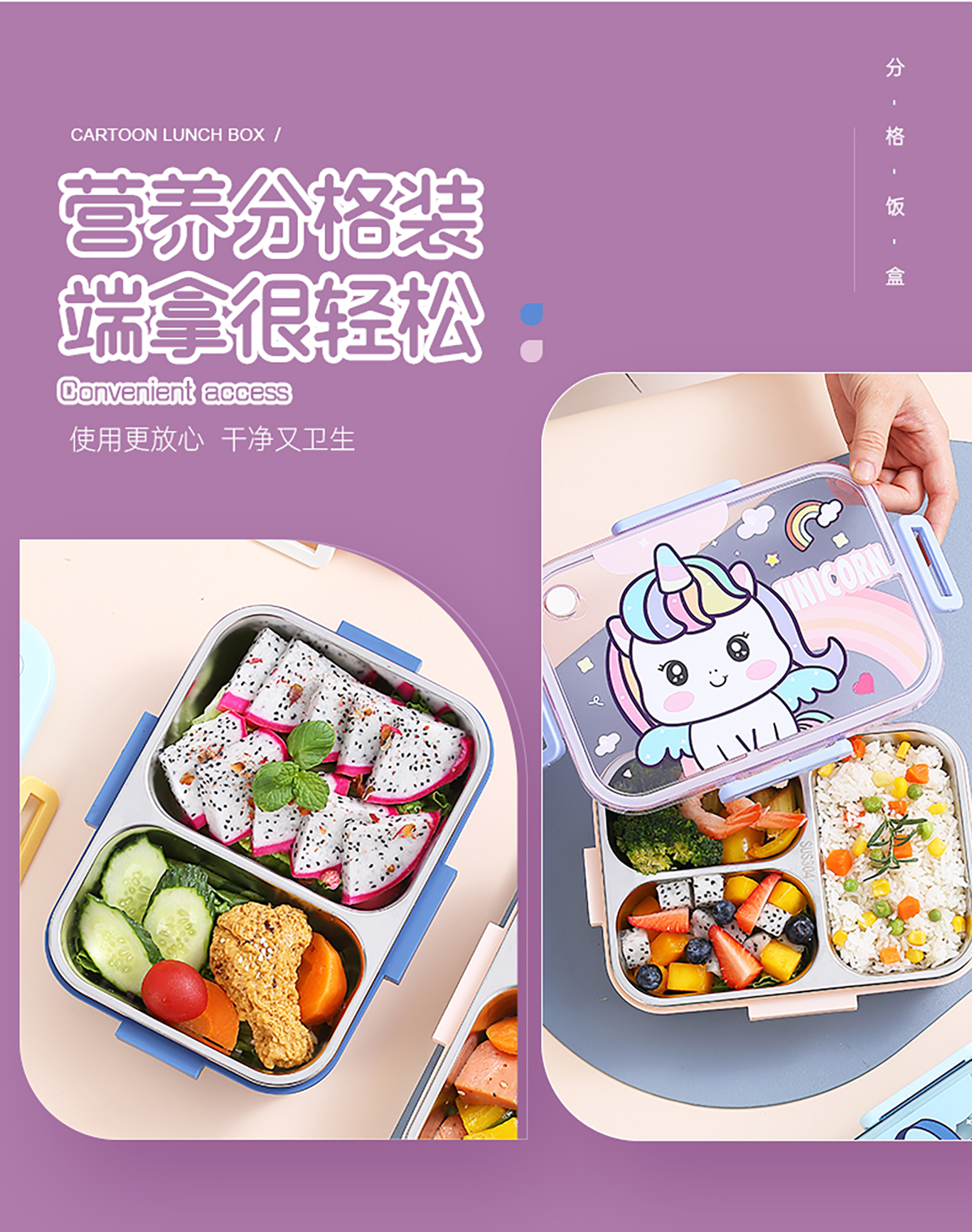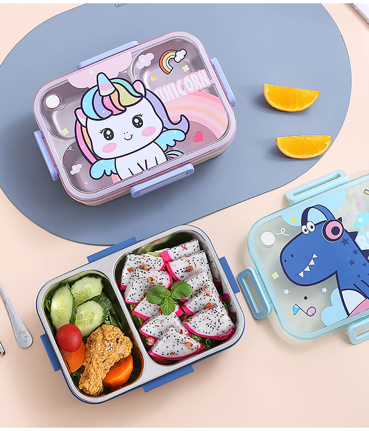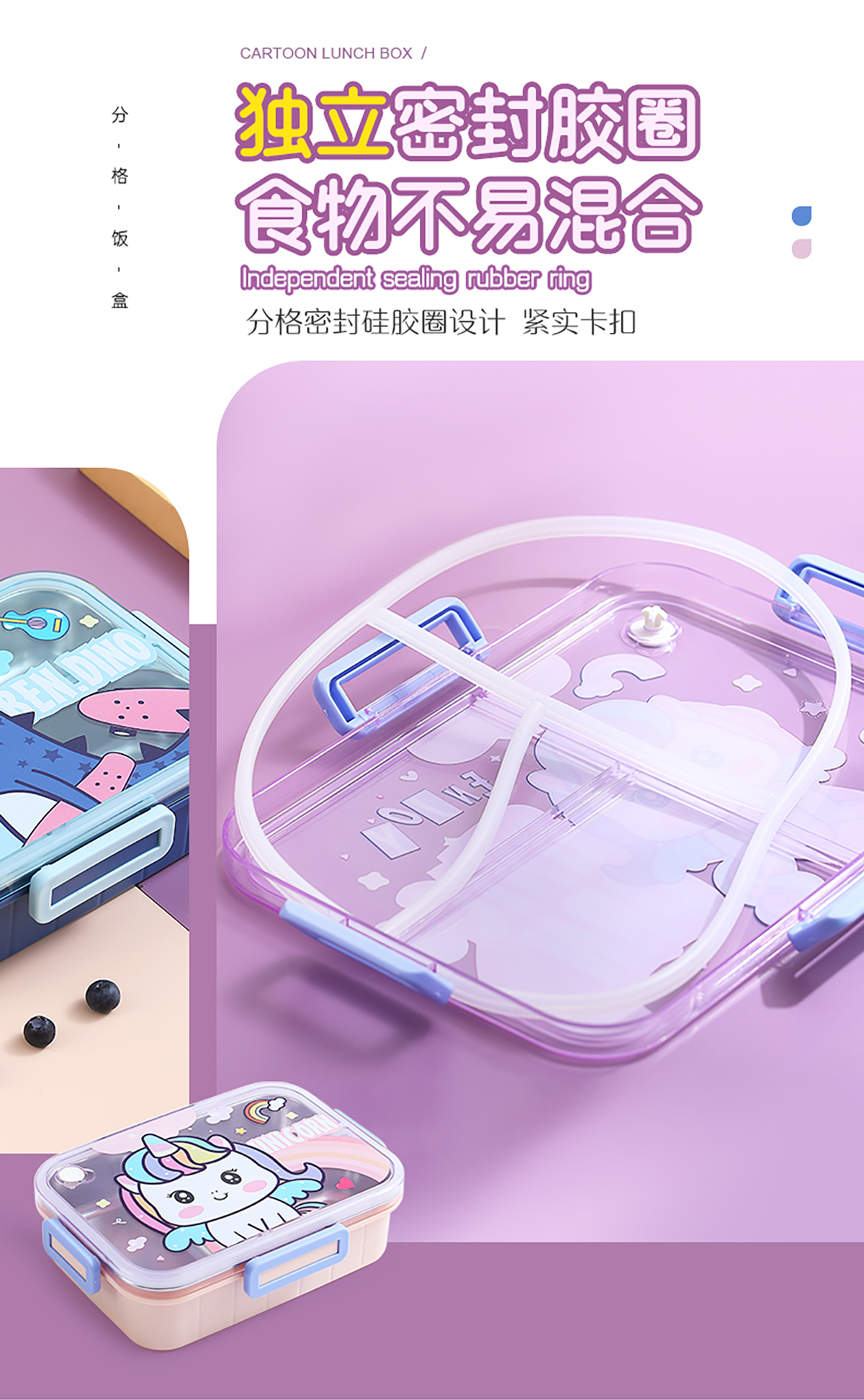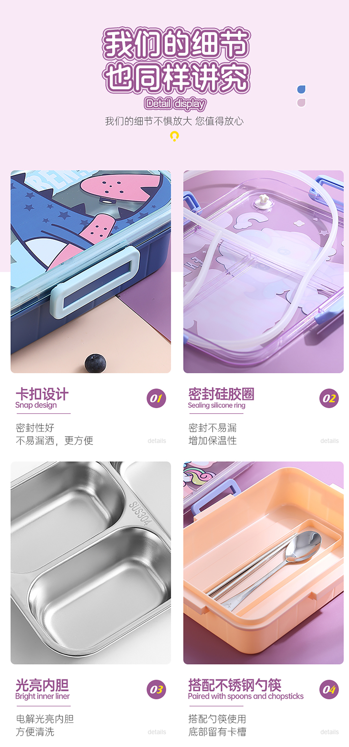 750ml/800ml獨(dú)立密封不銹鋼餐盒(卡通三格/二格+不銹鋼勺筷)