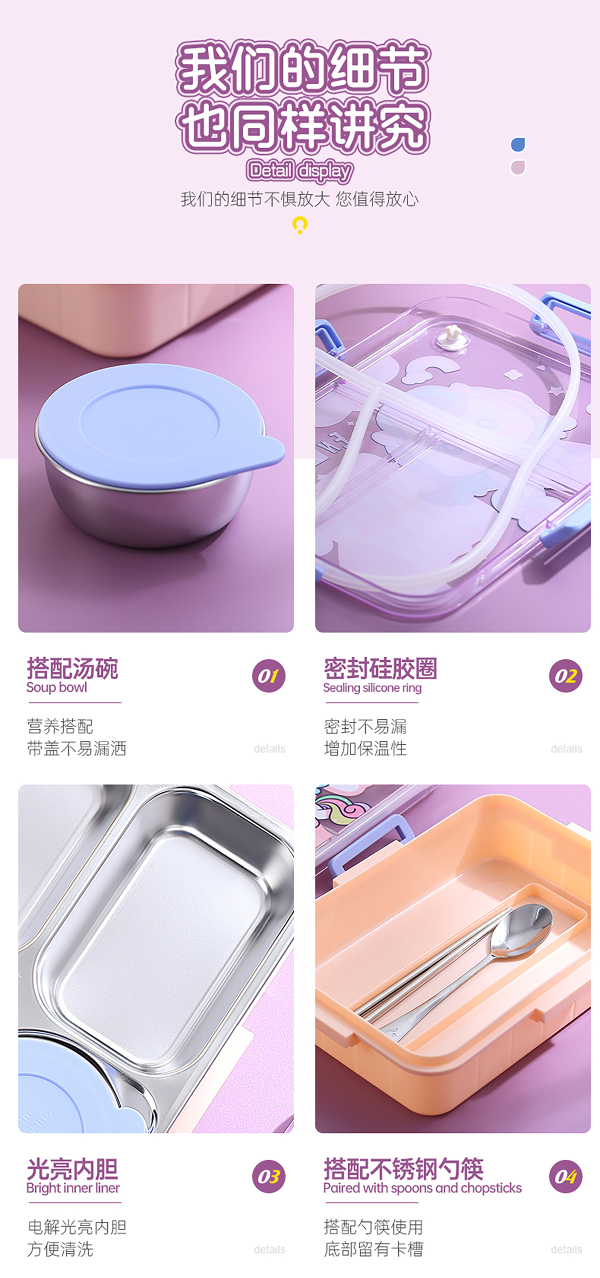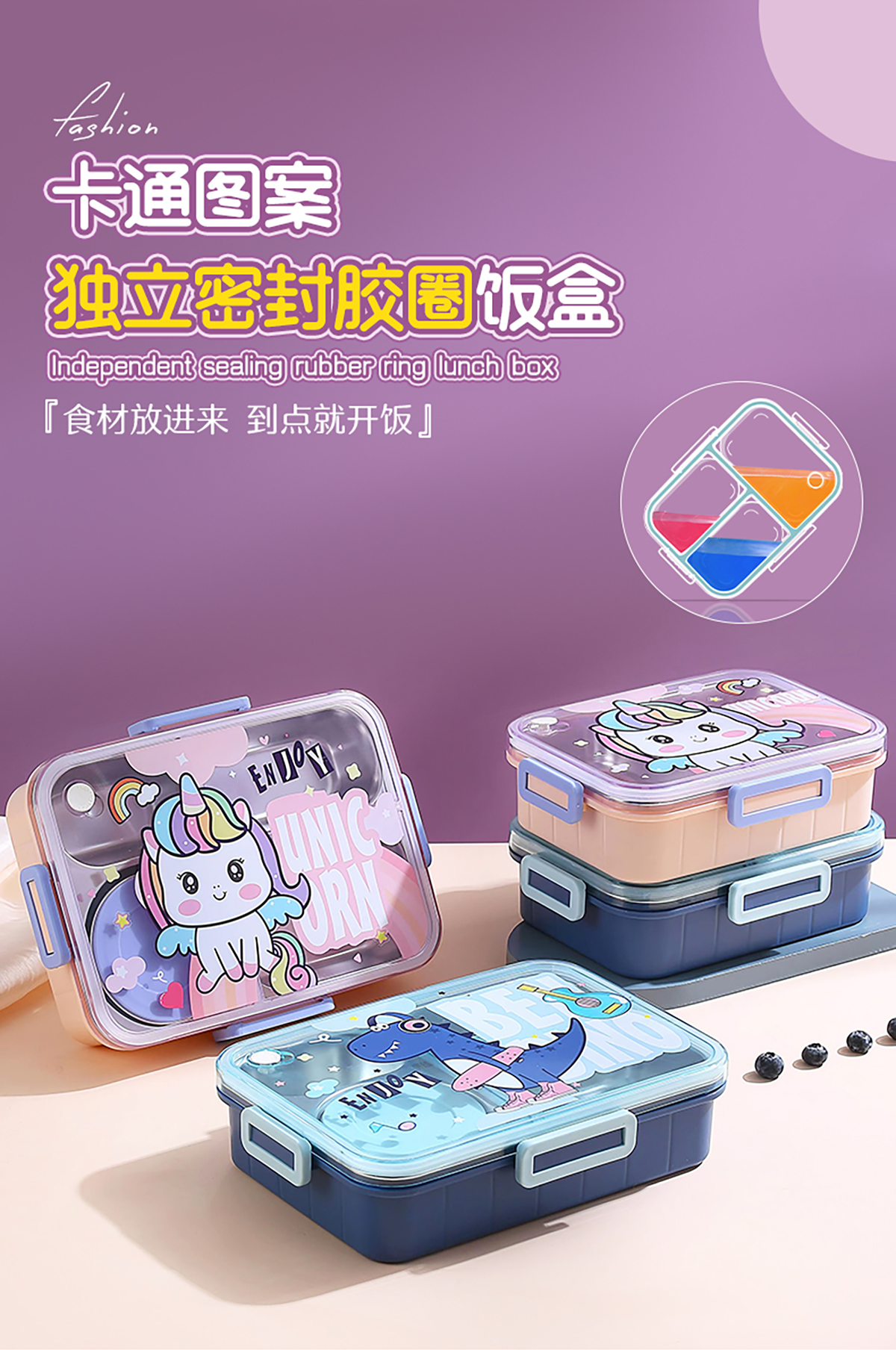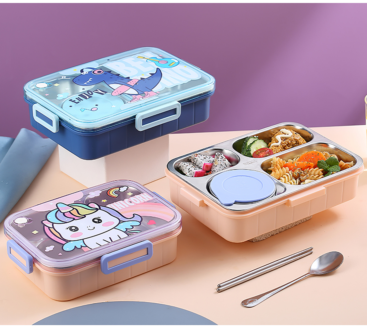 900ml獨立密封不銹鋼餐盒(卡通四格+不銹鋼勺筷/碗150ml不銹鋼勺筷)