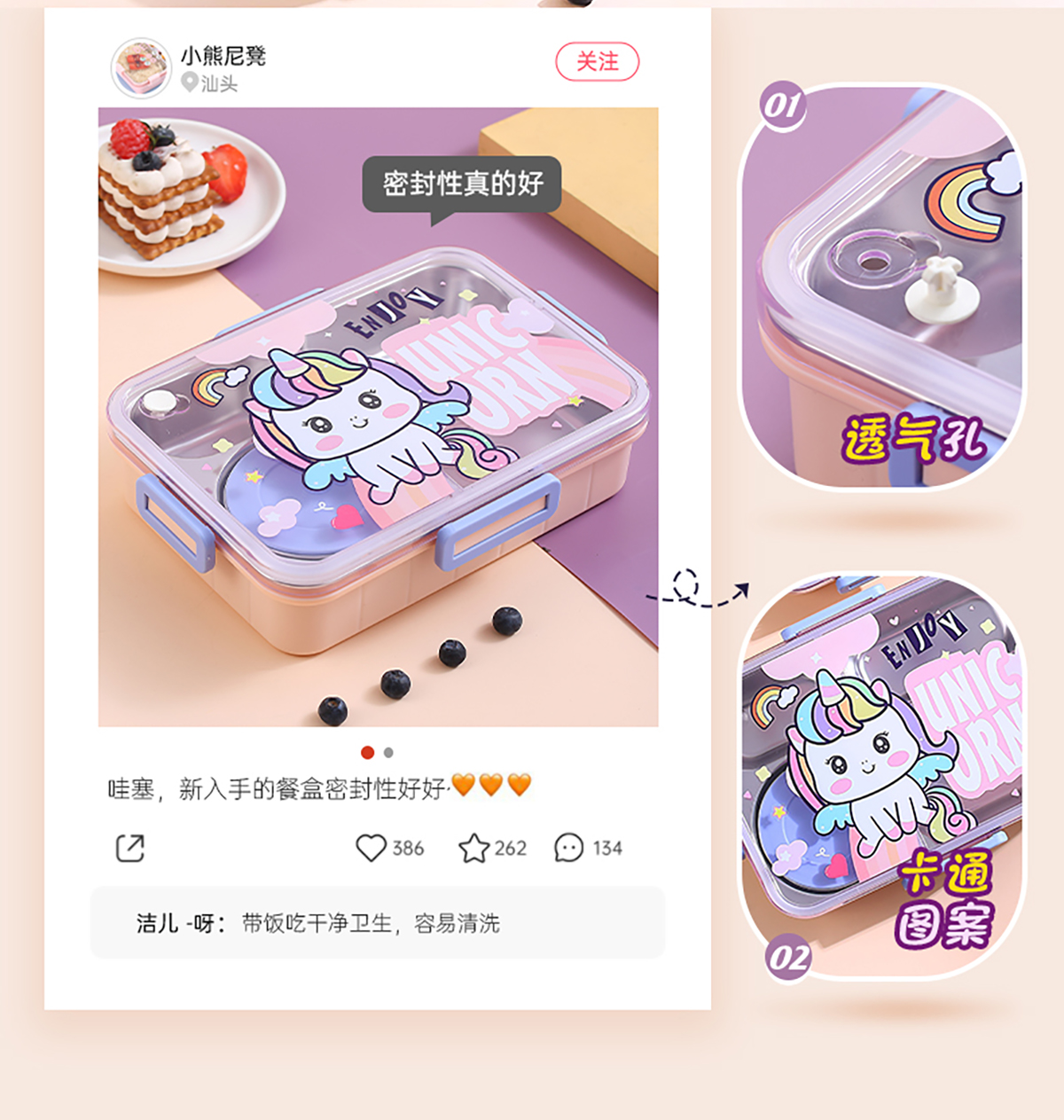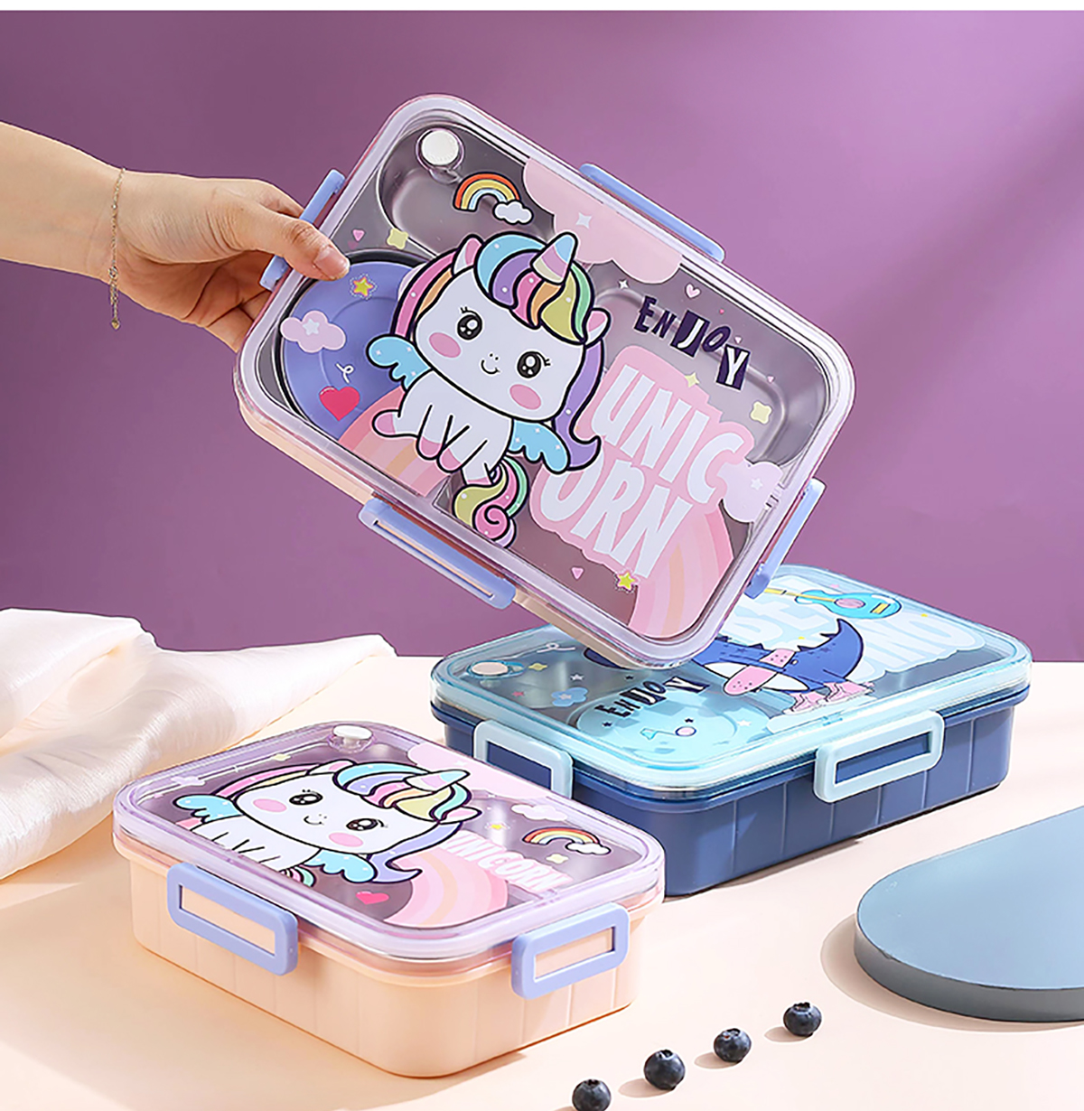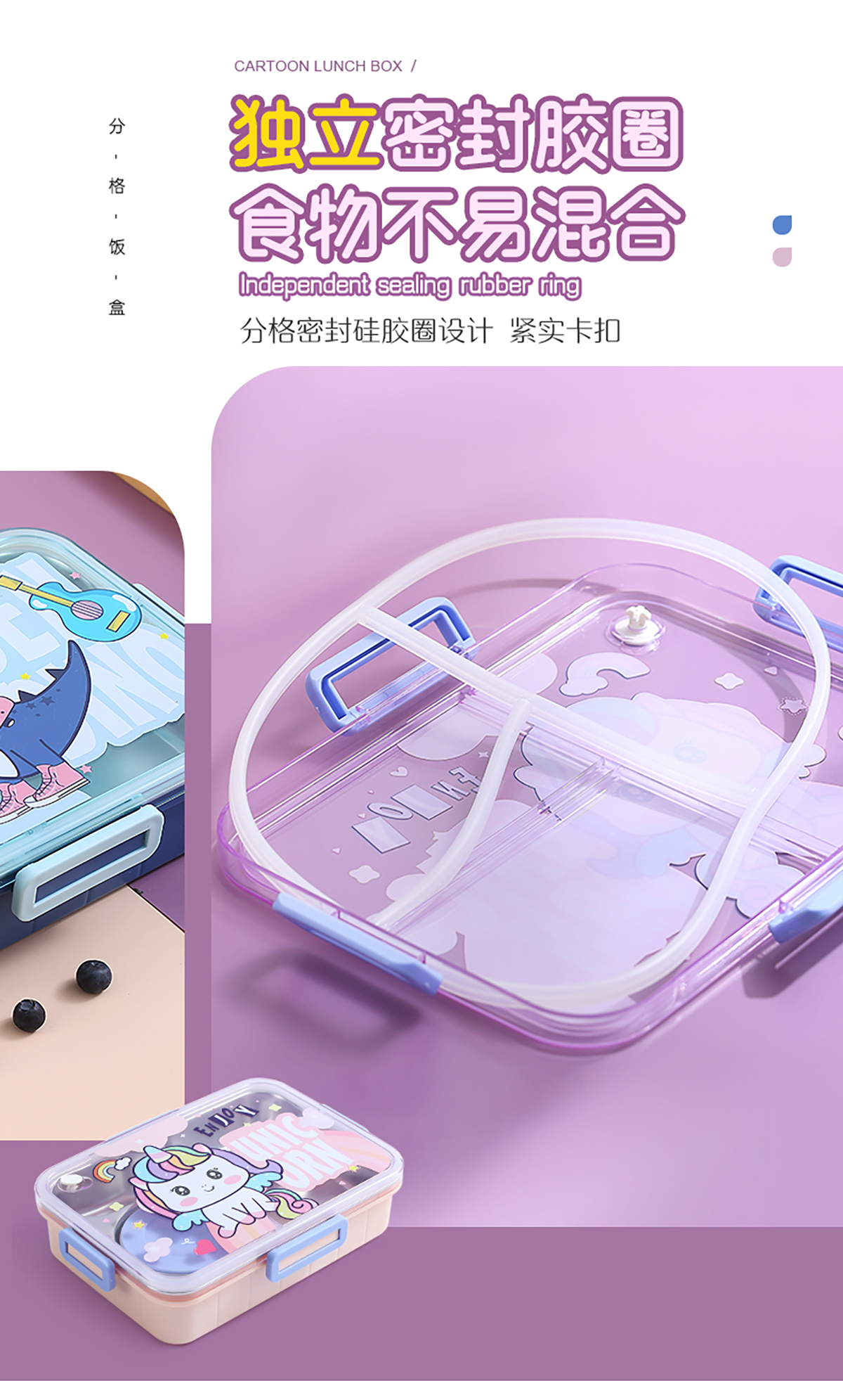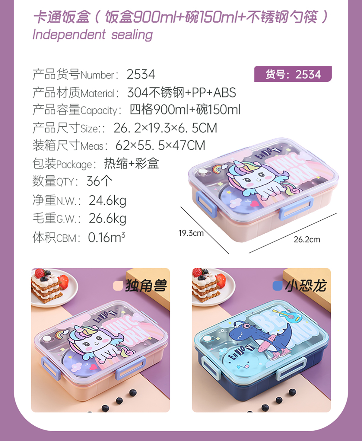 900ml獨立密封不銹鋼餐盒(卡通四格+不銹鋼勺筷/碗150ml不銹鋼勺筷)