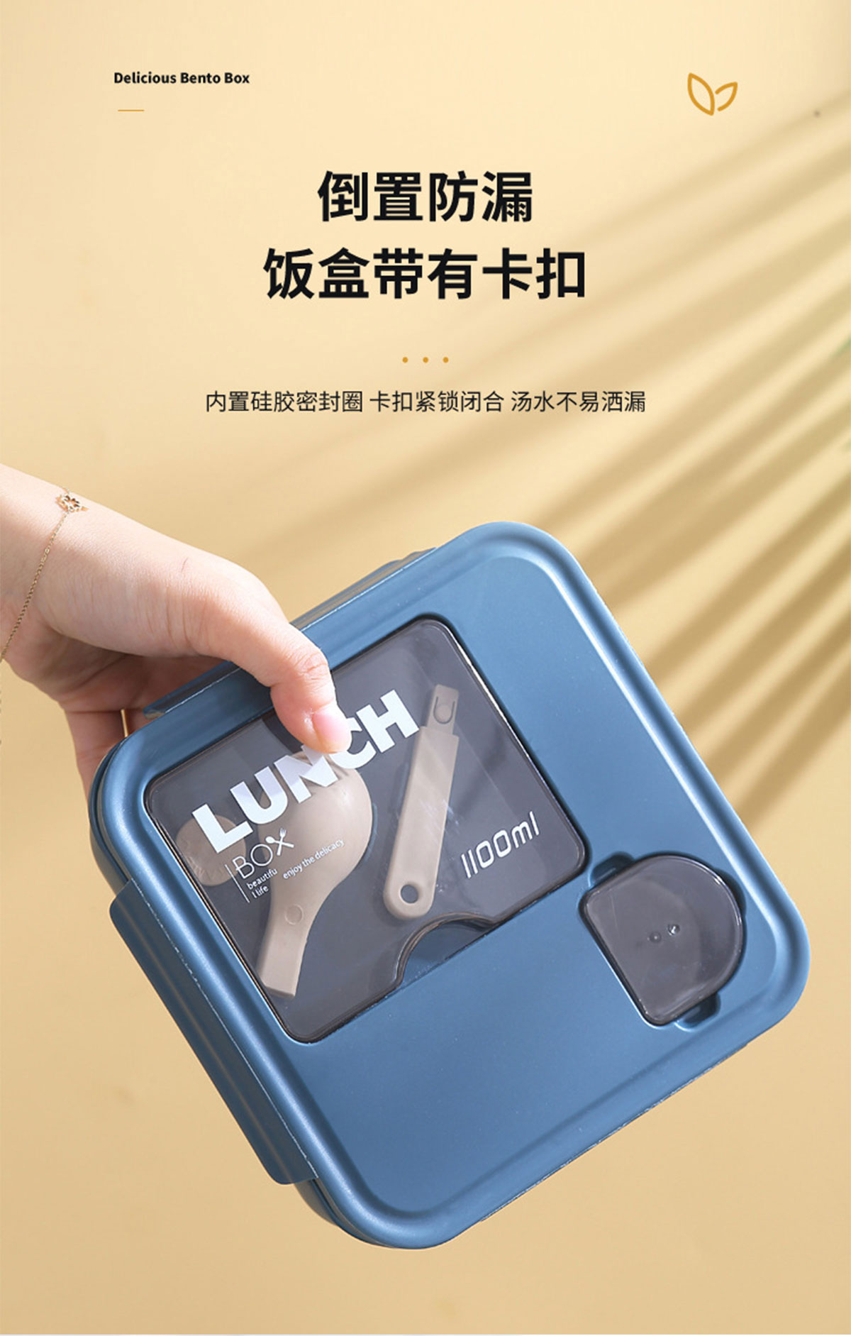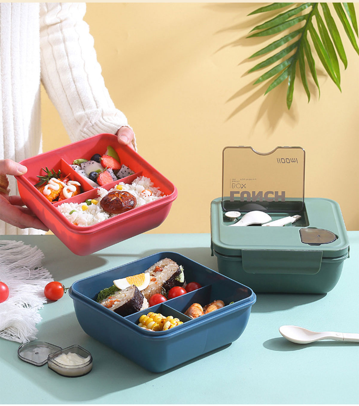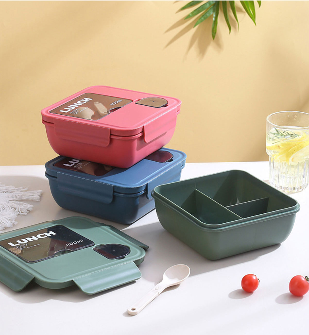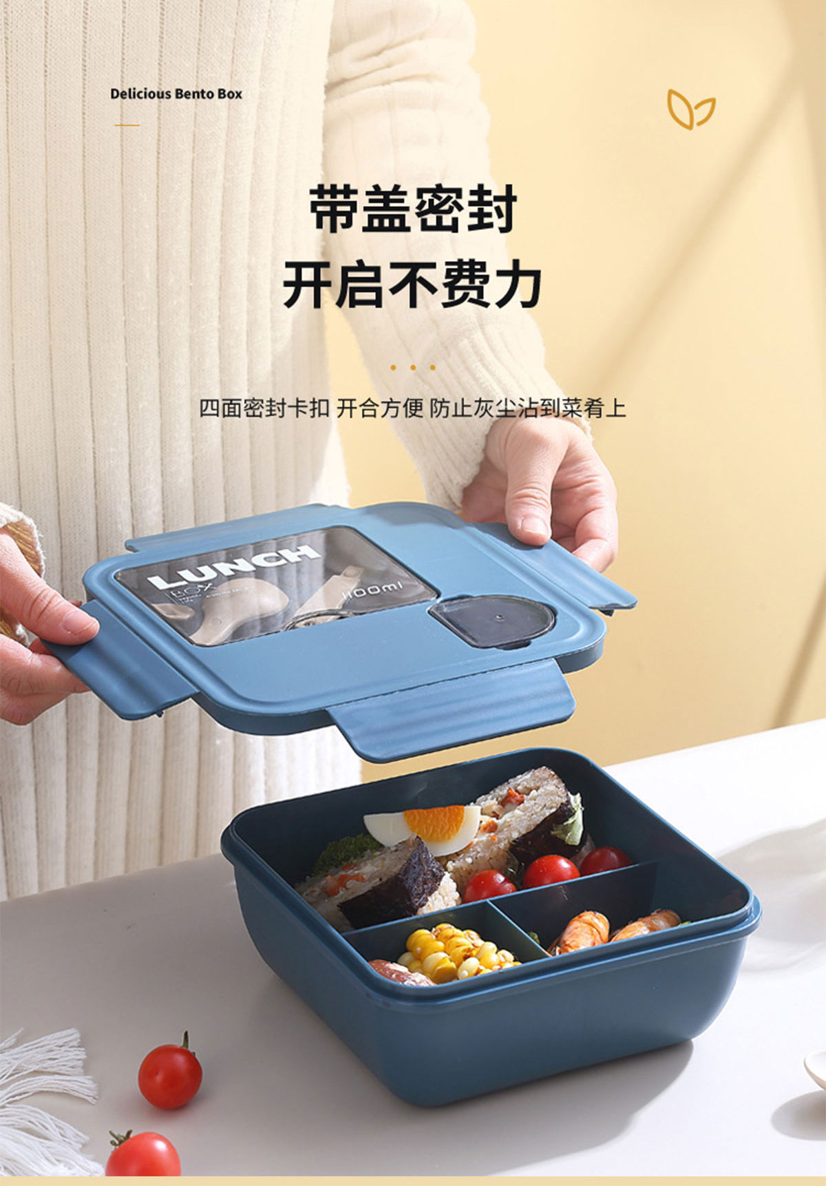 正方形醬料盒三格飯盒1100ml