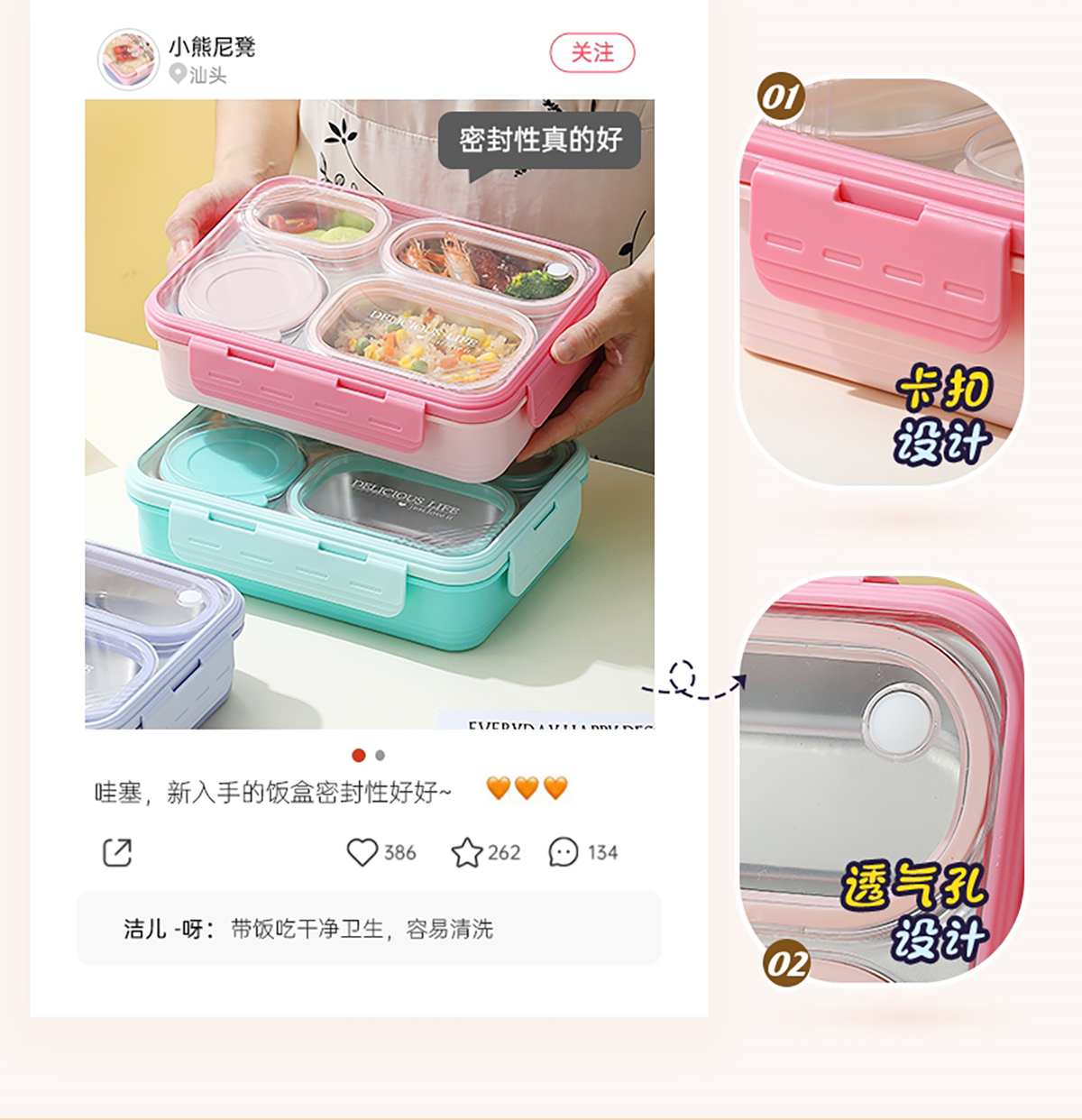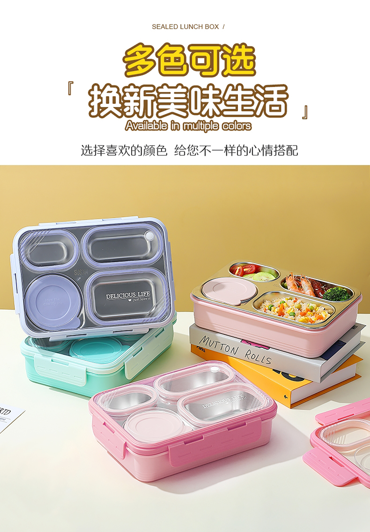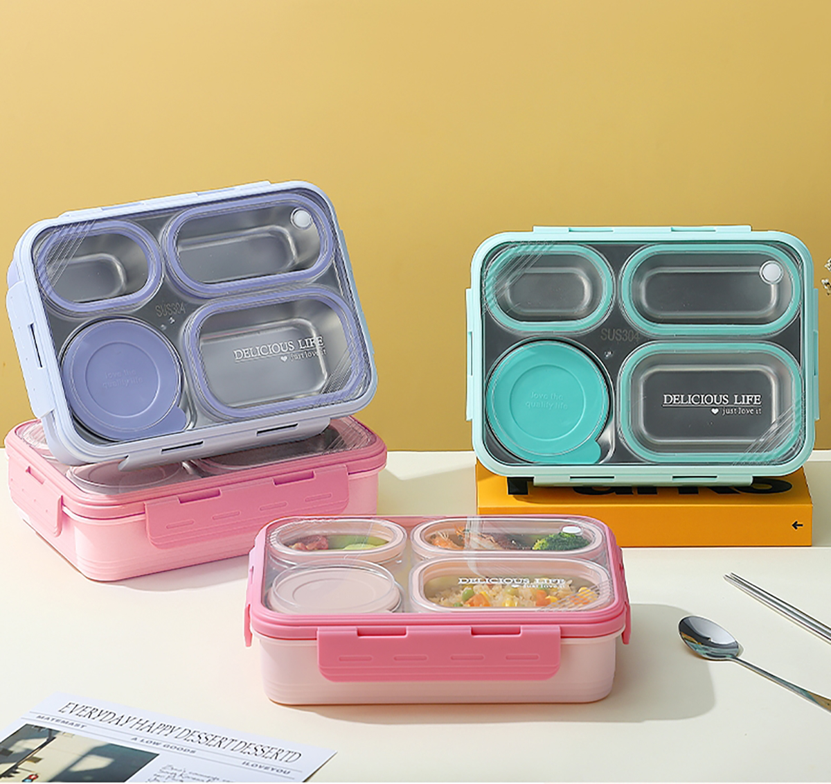 中號4格不串味不銹鋼餐盒帶碗800ml+150ml碗