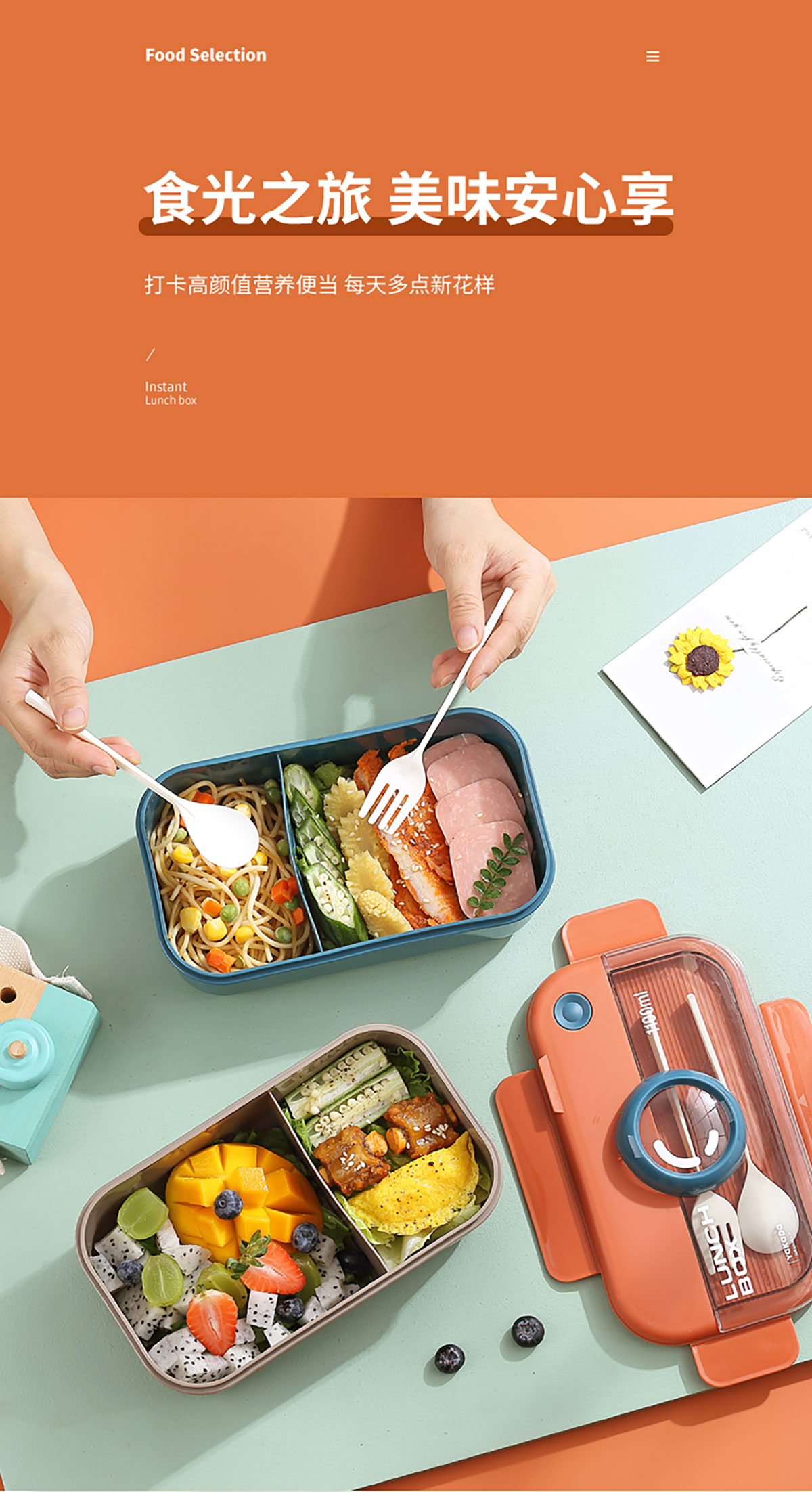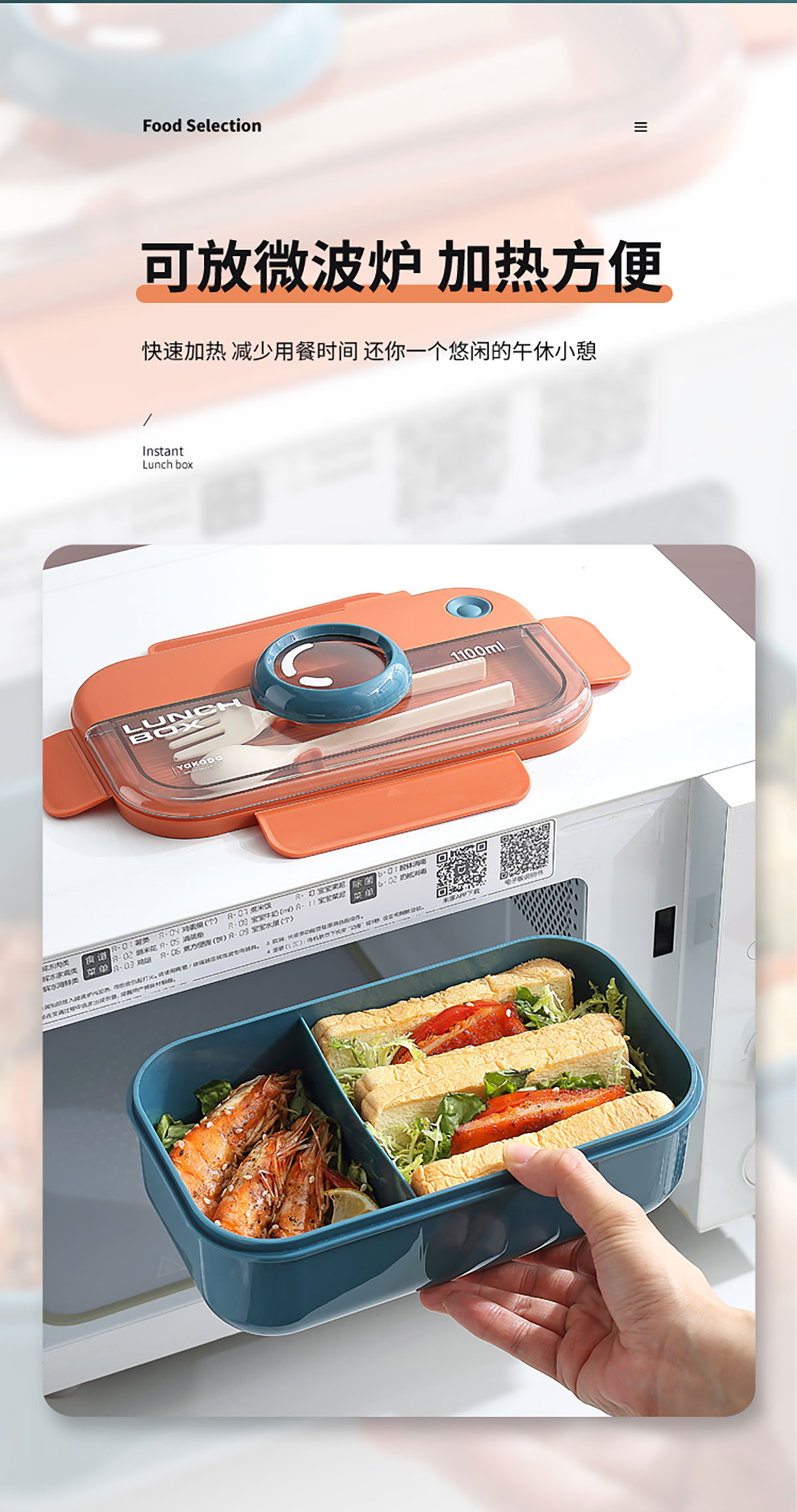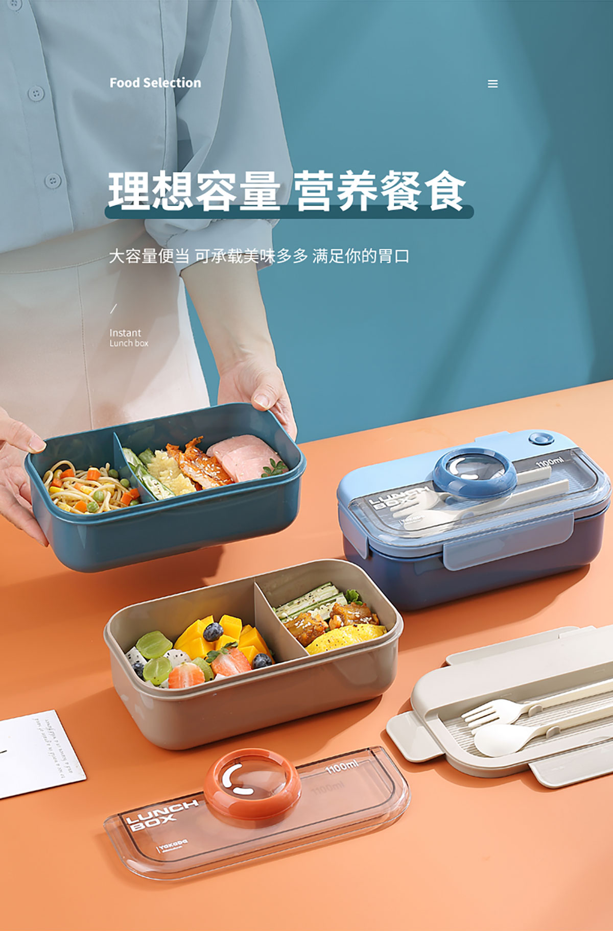 長方相機(jī)蓋飯盒1100ml