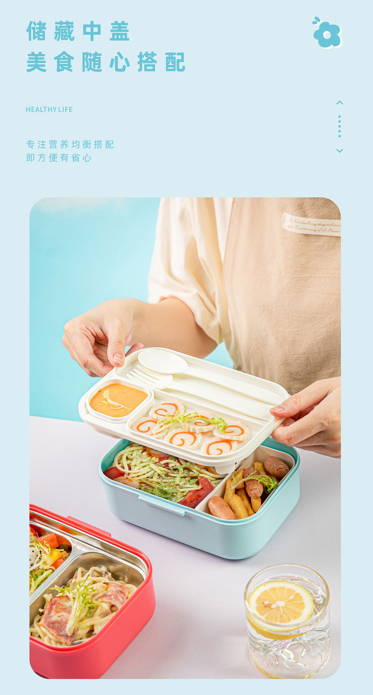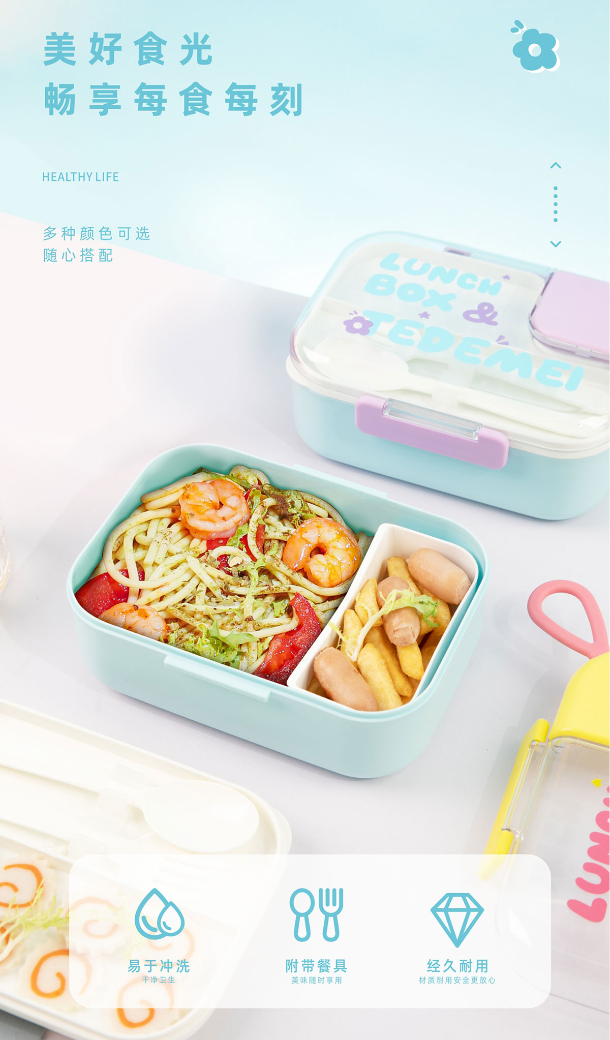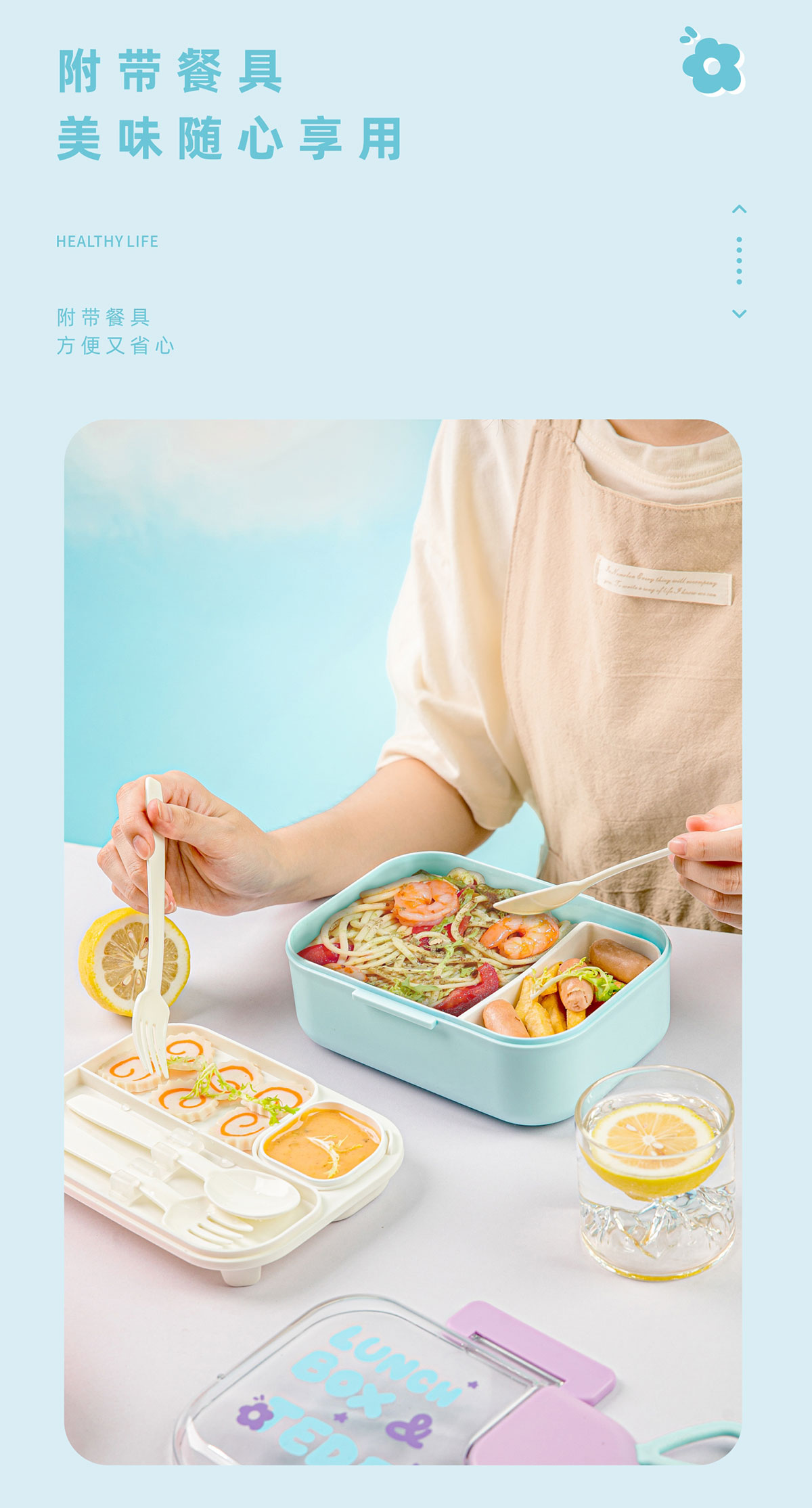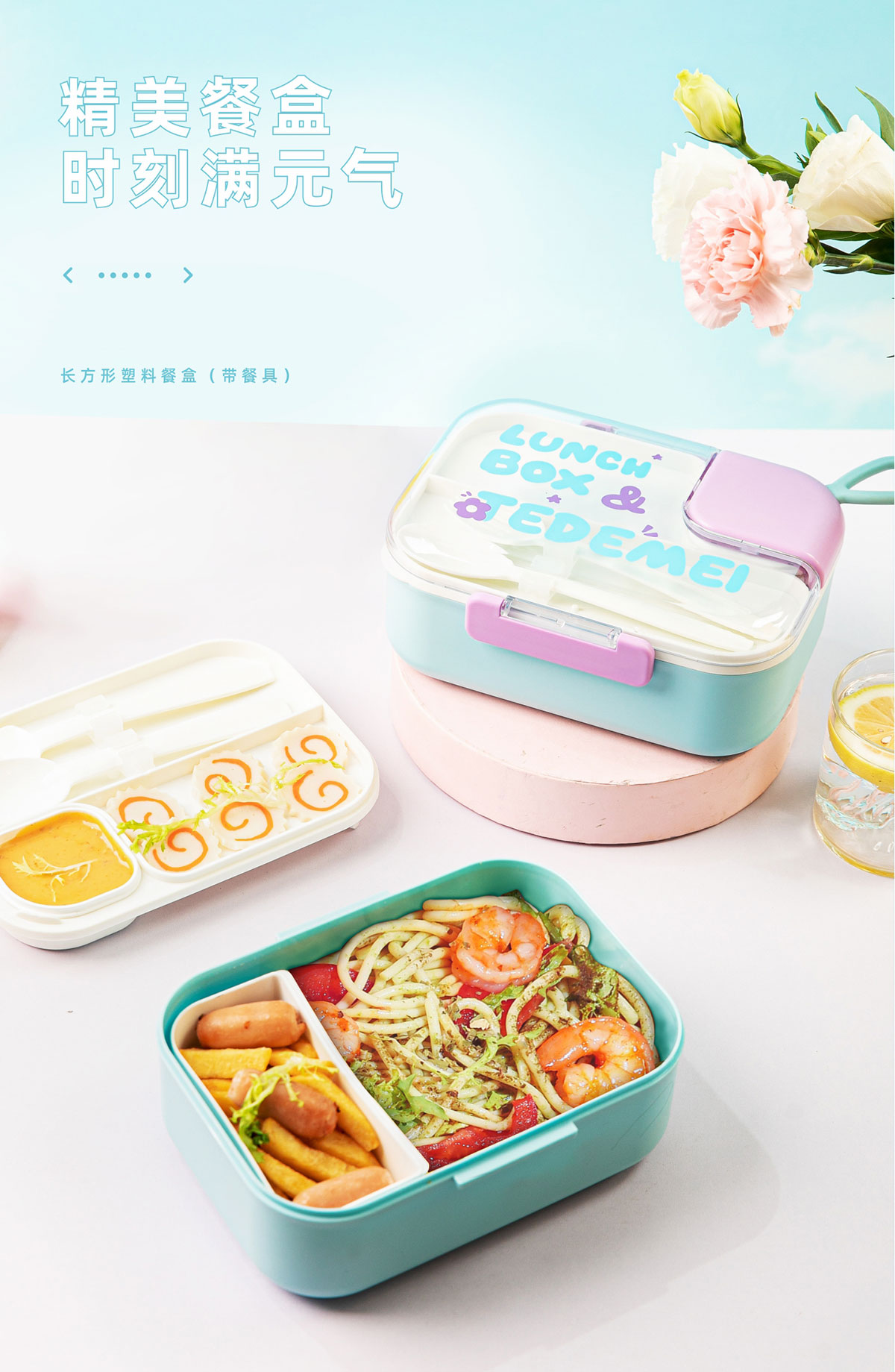 長(zhǎng)方形塑料餐盒(帶餐具)