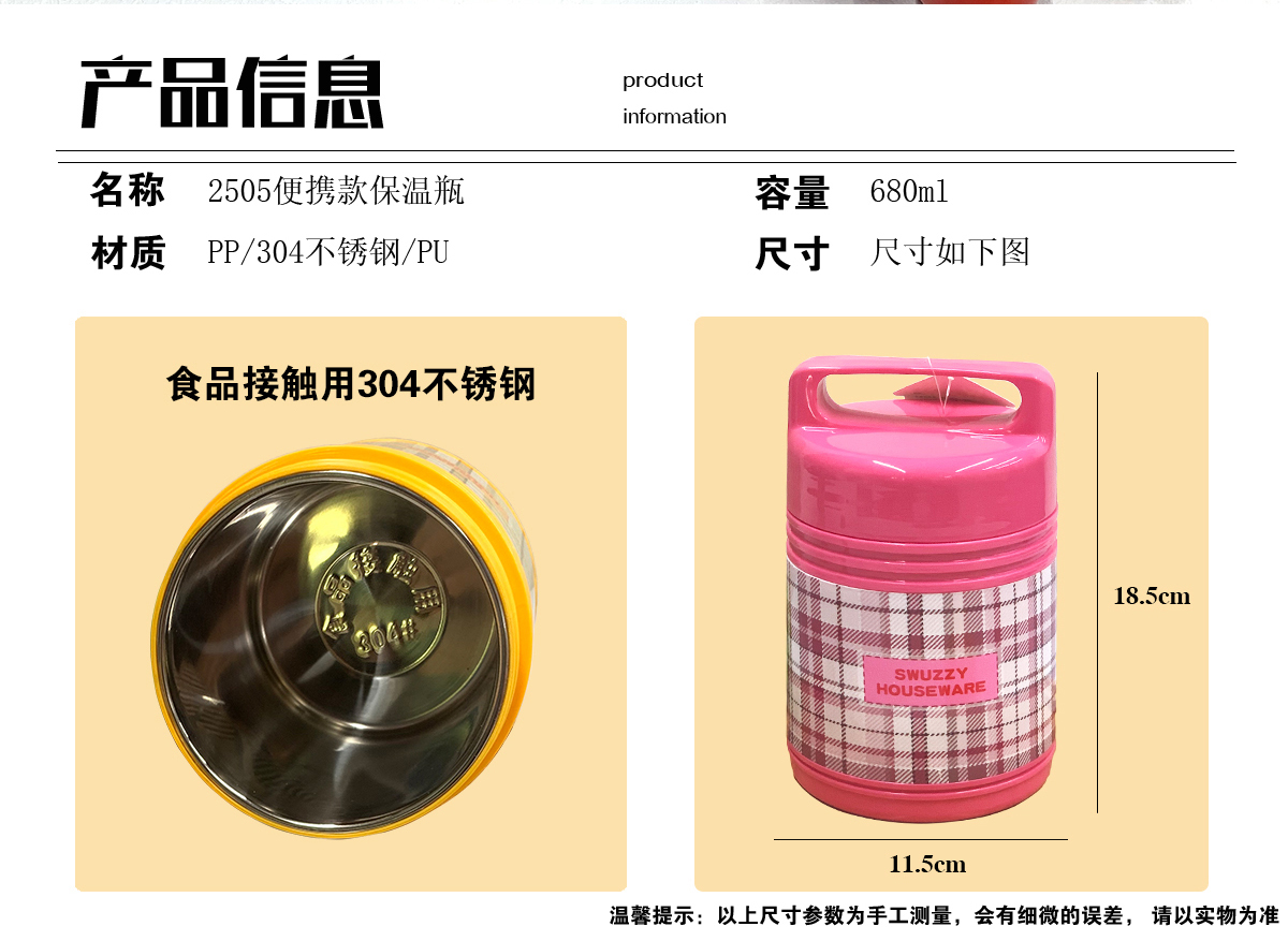 保溫瓶(全鋼內(nèi)膽)格紋680ml