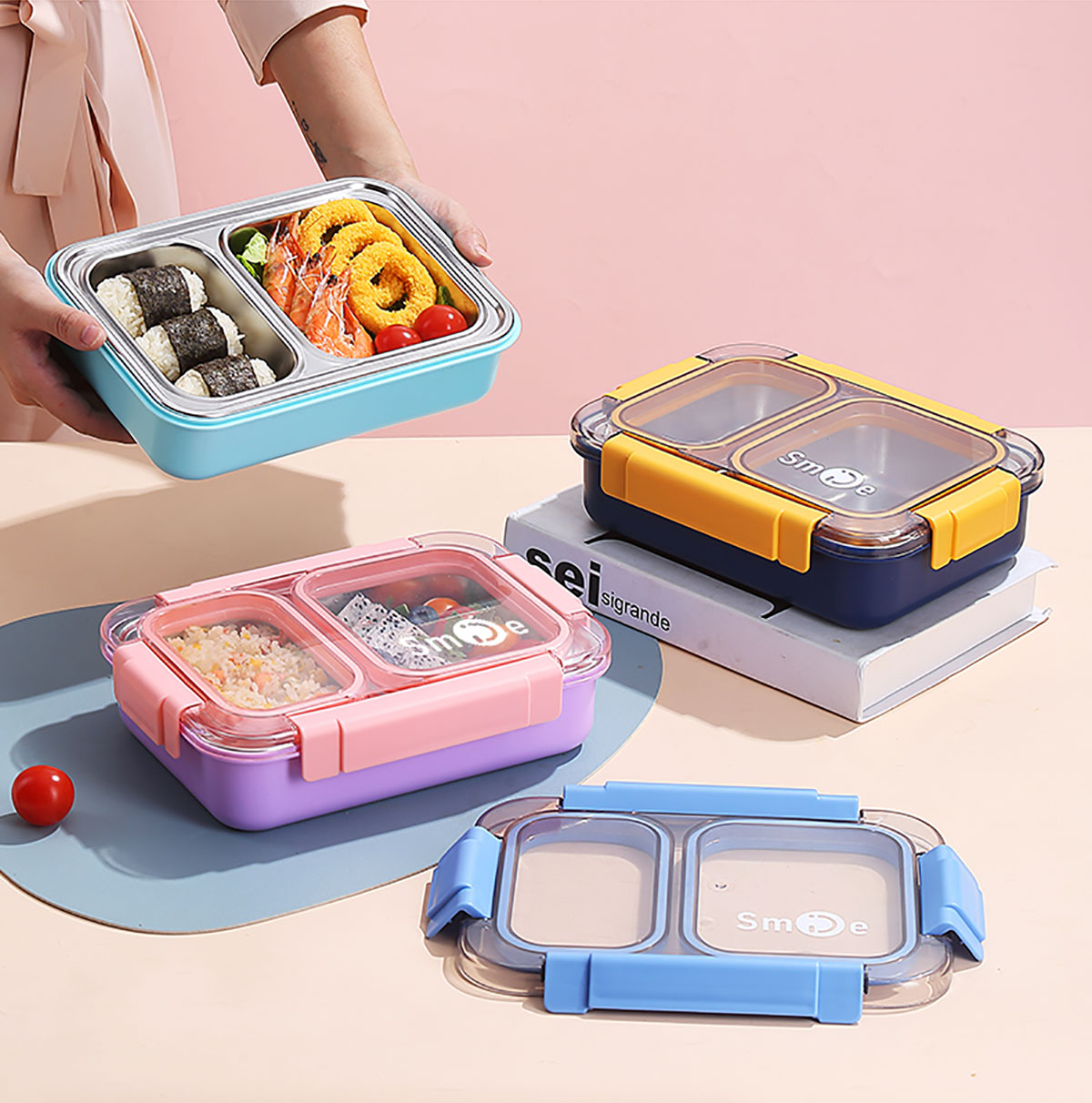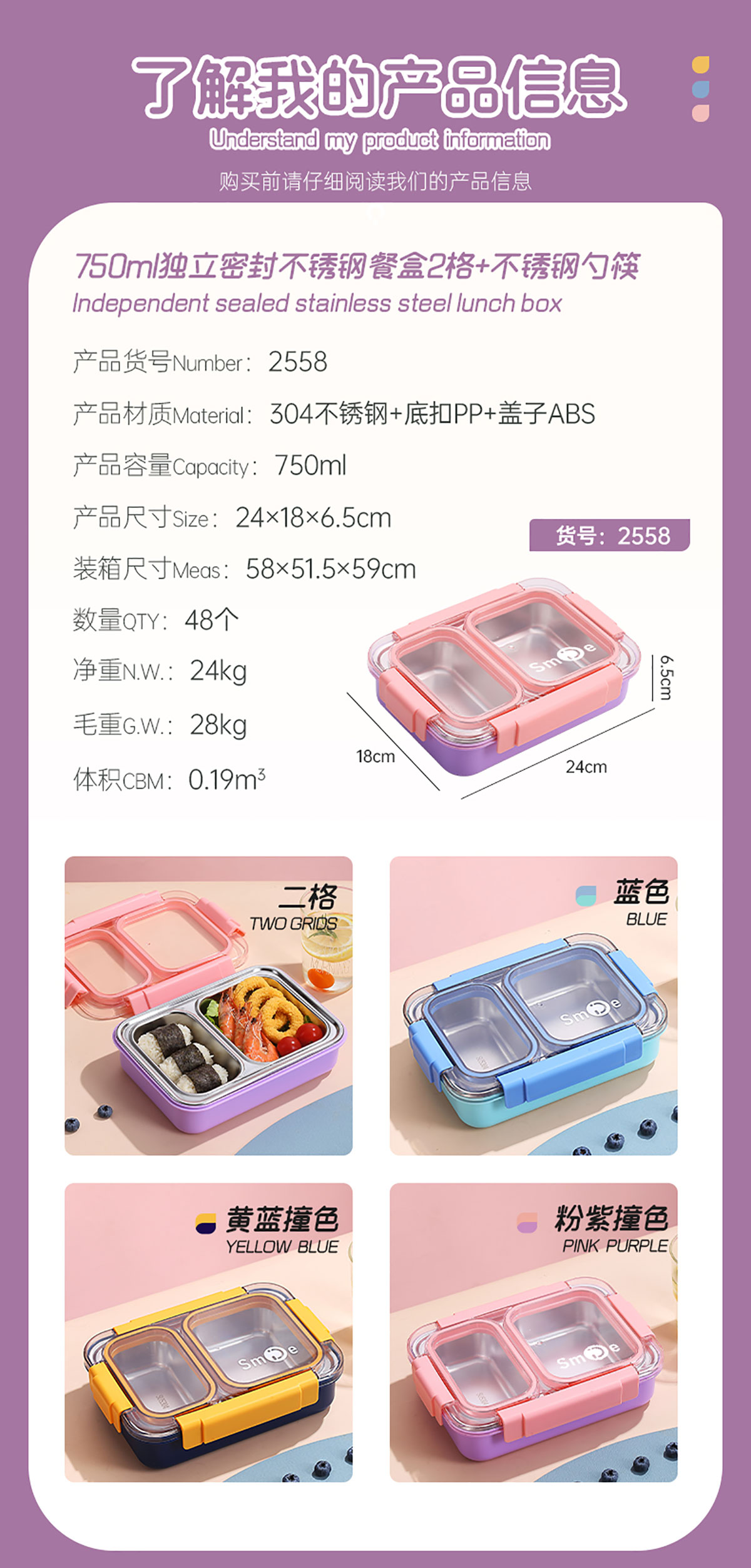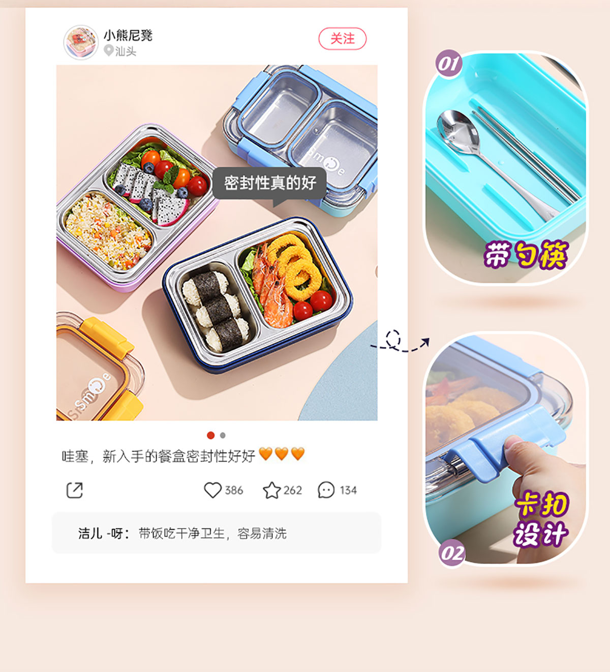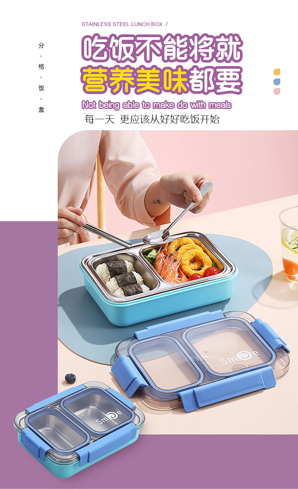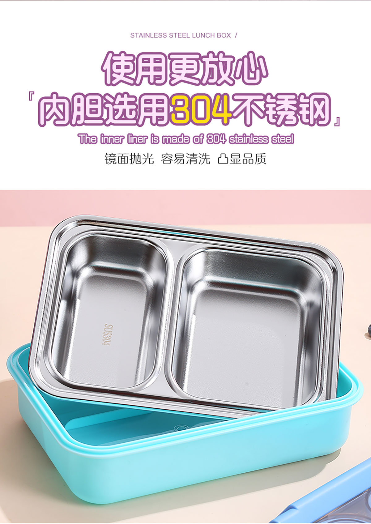 750ml獨(dú)立密封不銹鋼餐盒2格+不銹鋼勺筷