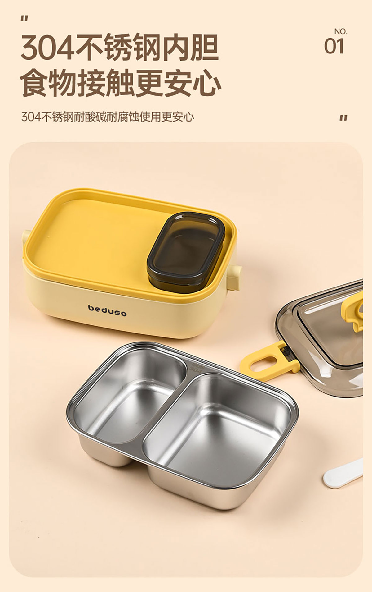 長方形分格不銹鋼便當(dāng)盒500ml