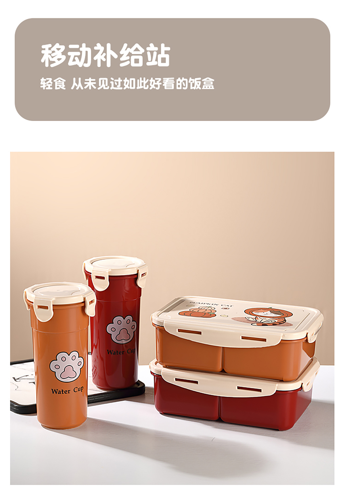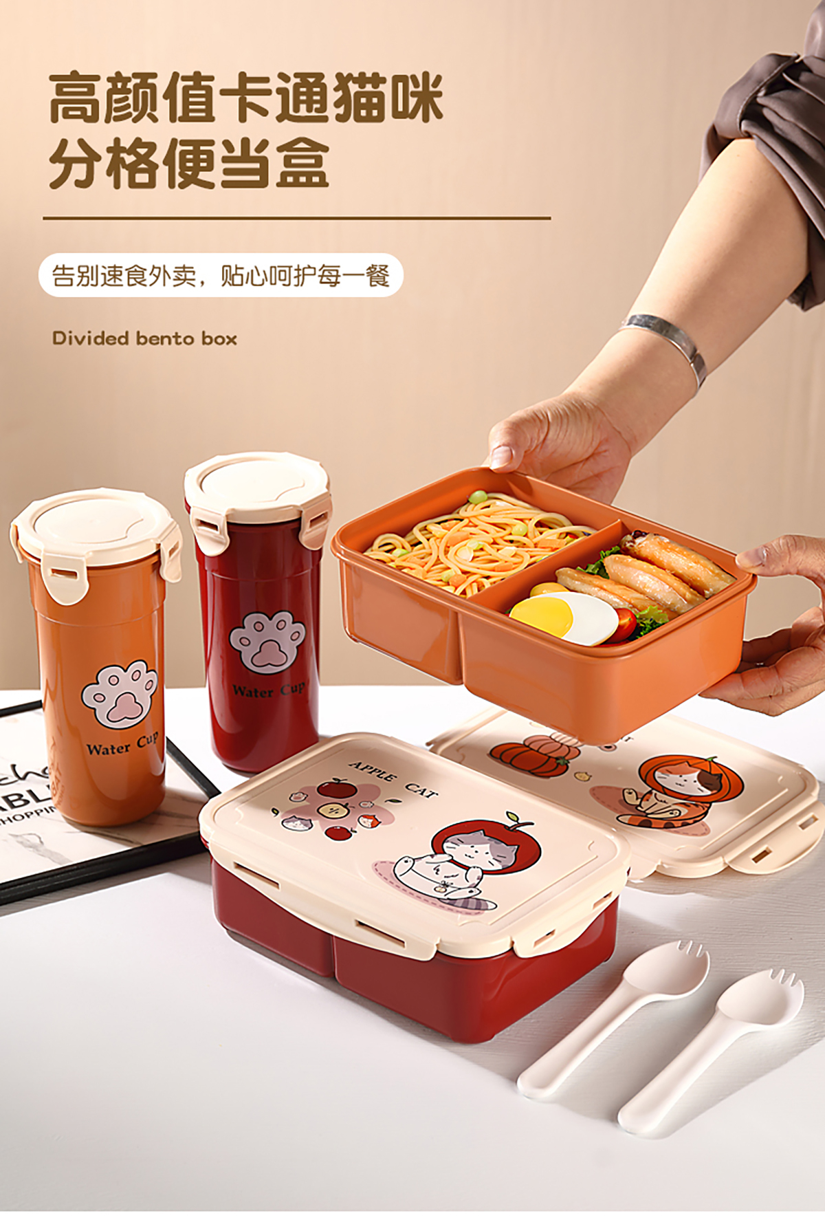 萌貓卡通飯盒(套裝/單個(gè))