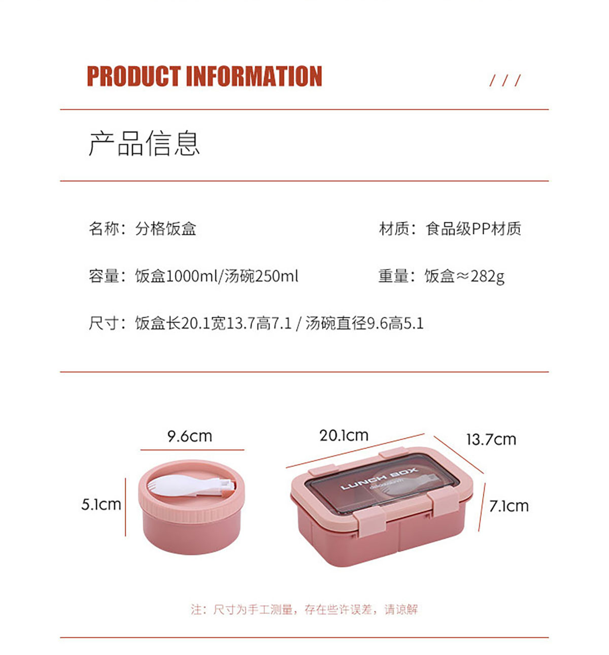 塑料三格分格飯盒1000ml/湯碗250ml