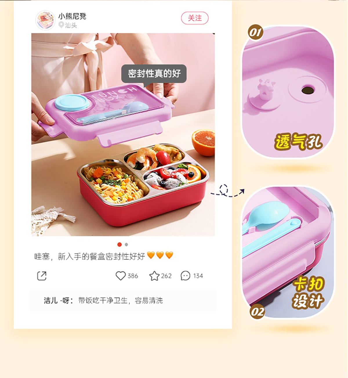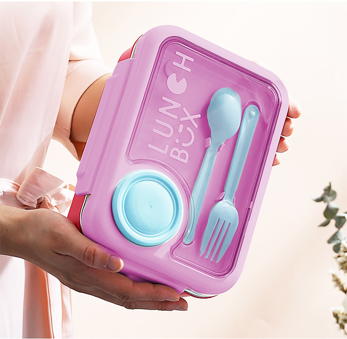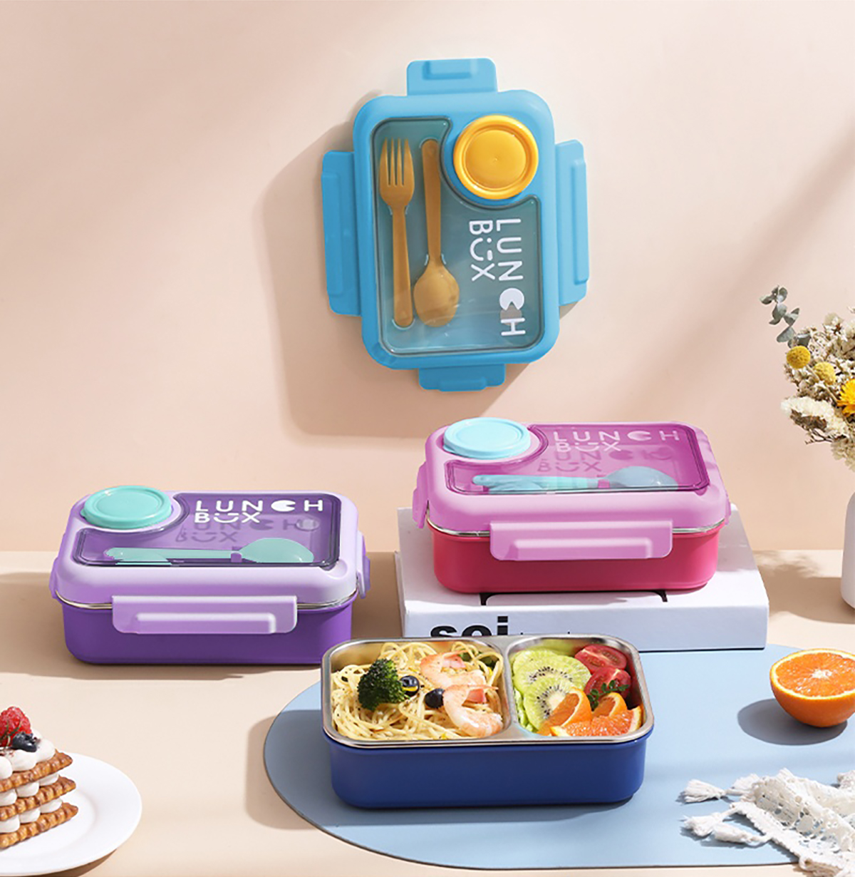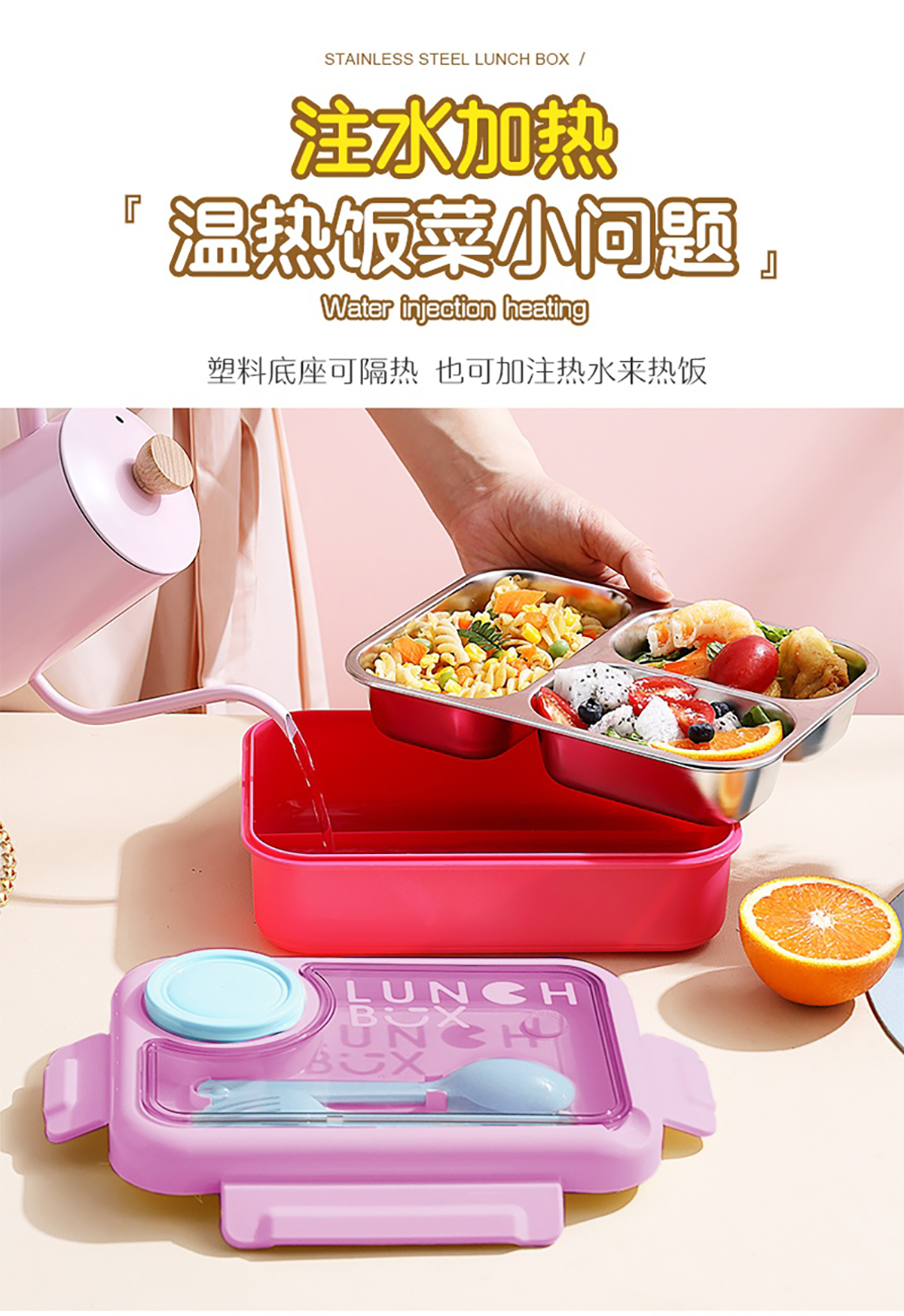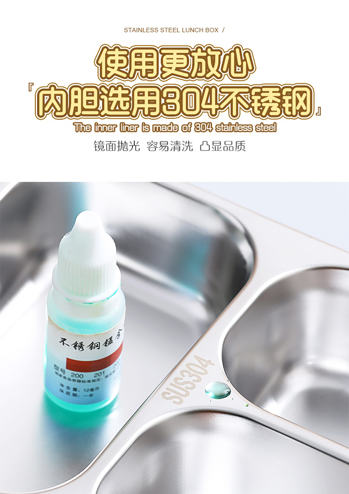 750ml獨(dú)立密封不銹鋼餐盒2格/3格+醬料杯80ml+PP勺叉