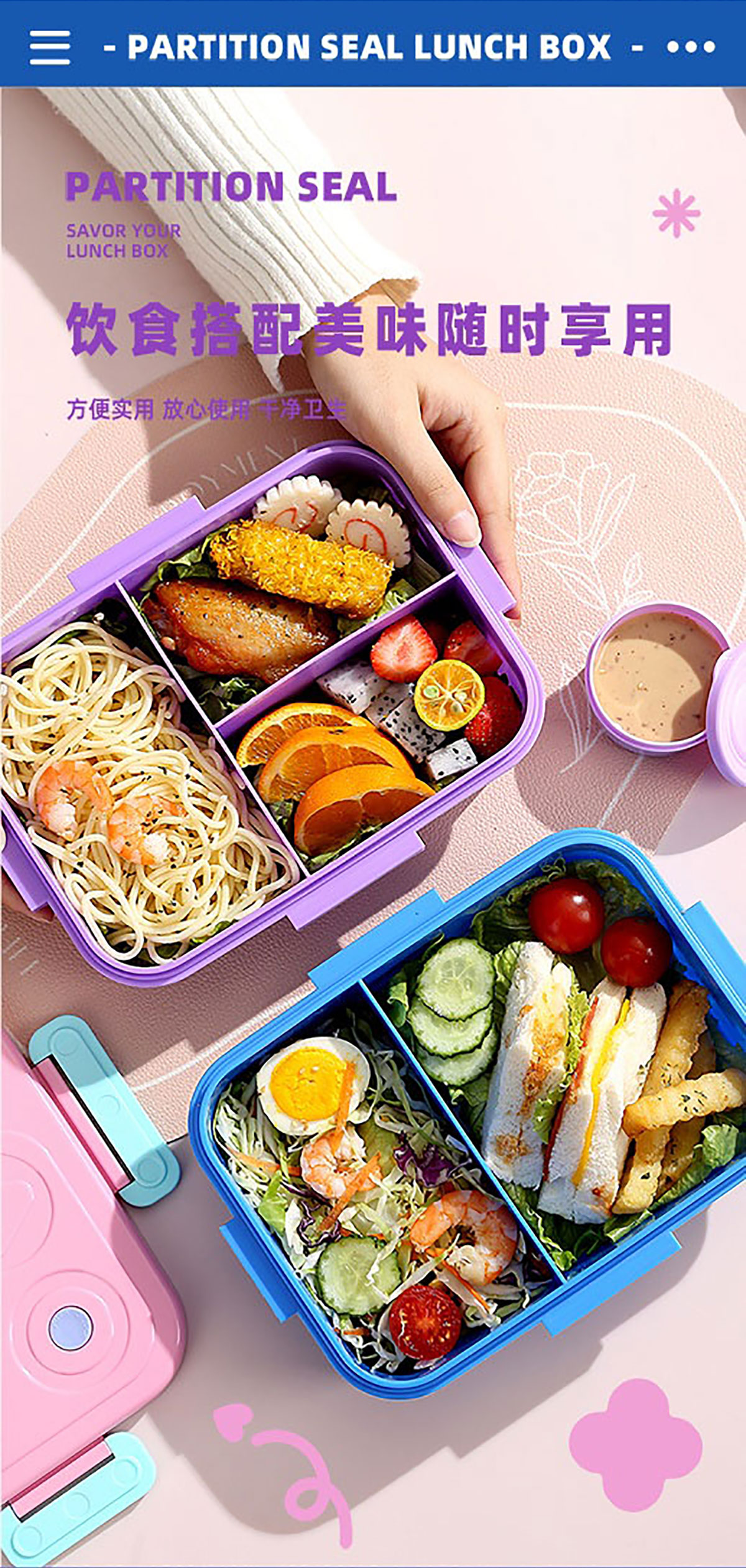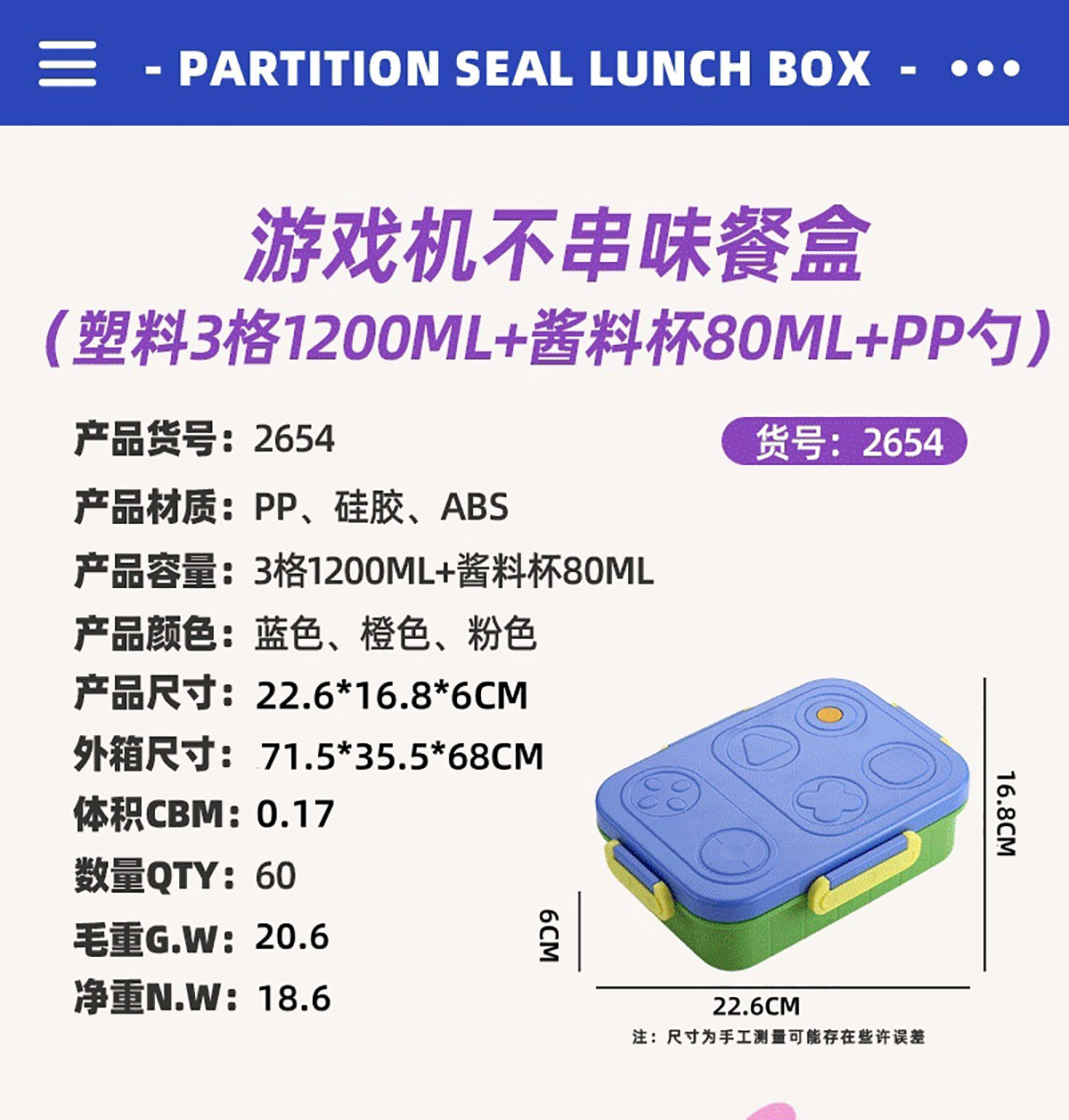 游戲機(jī)不串味餐盒(2格/3格1200ml+醬料杯80ml+PP勺)
