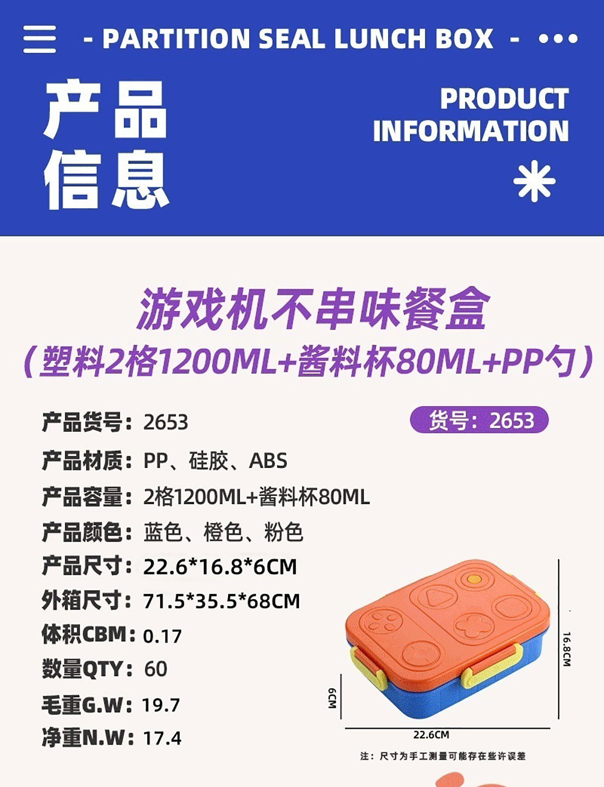 Size: AQX-2653(2格):227*177*65mm
