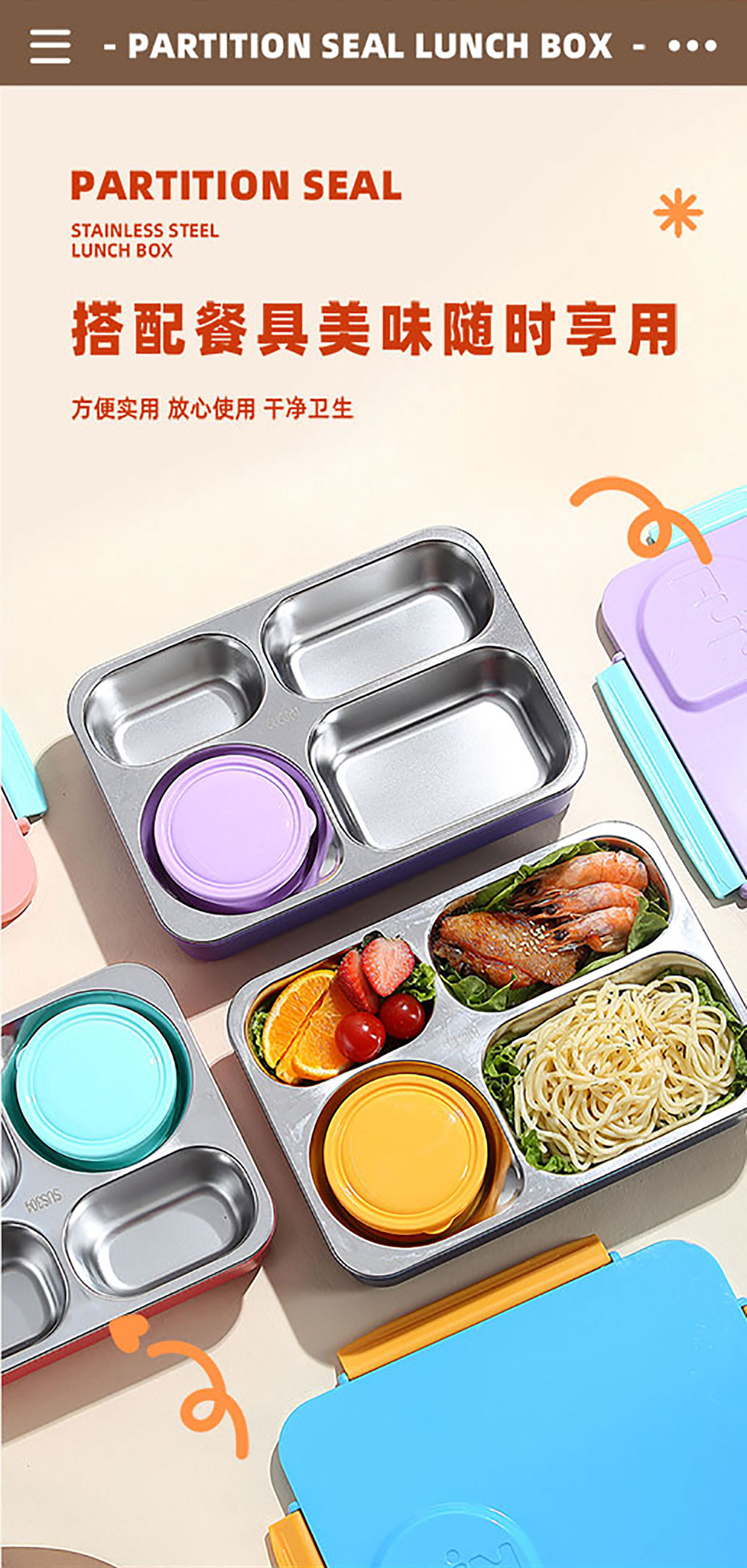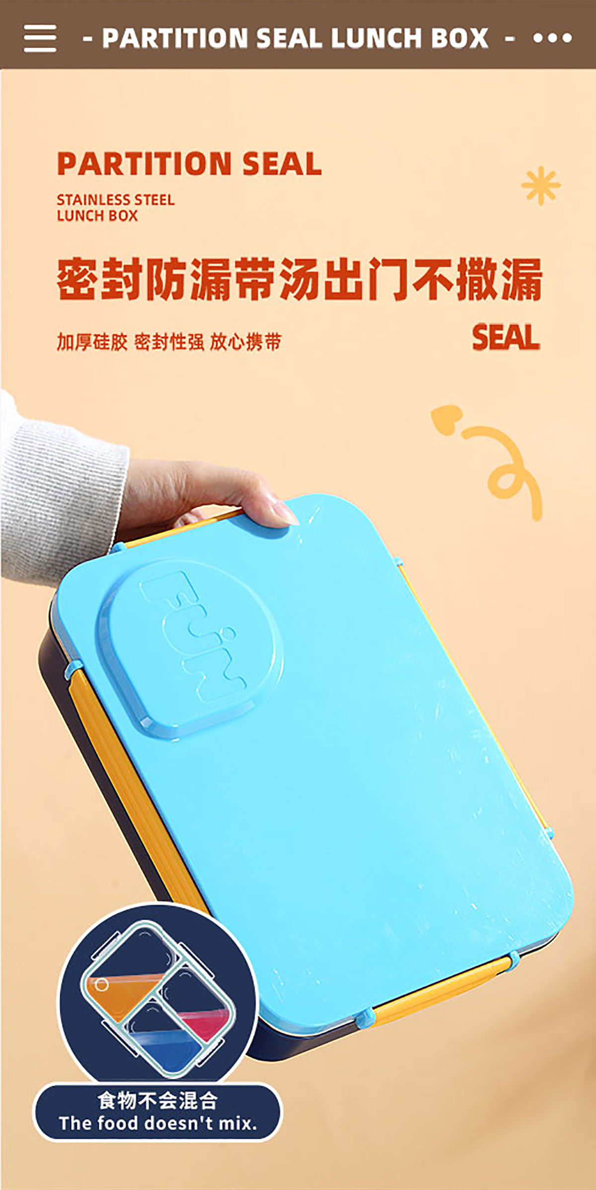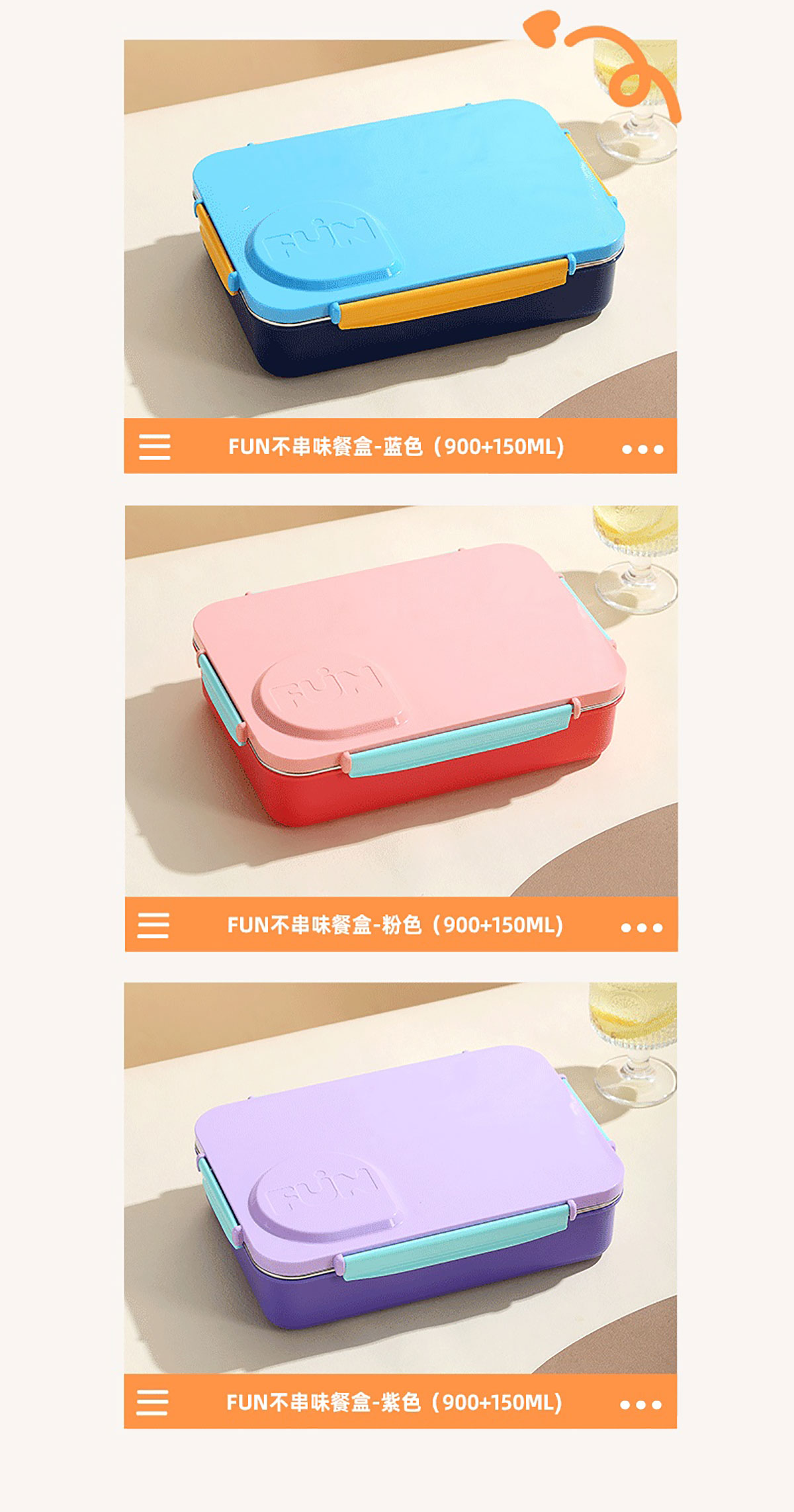FUN不串味餐盒(不銹鋼4格900ml+塑料碗/不銹鋼碗150ml+不銹鋼勺筷)