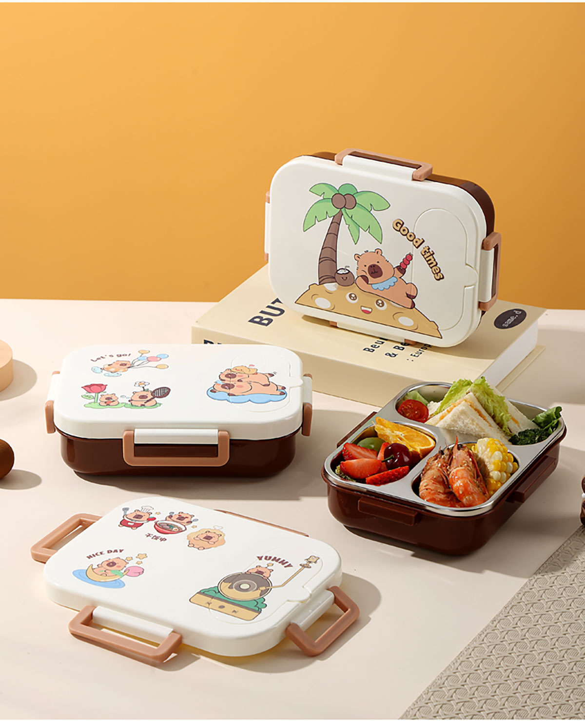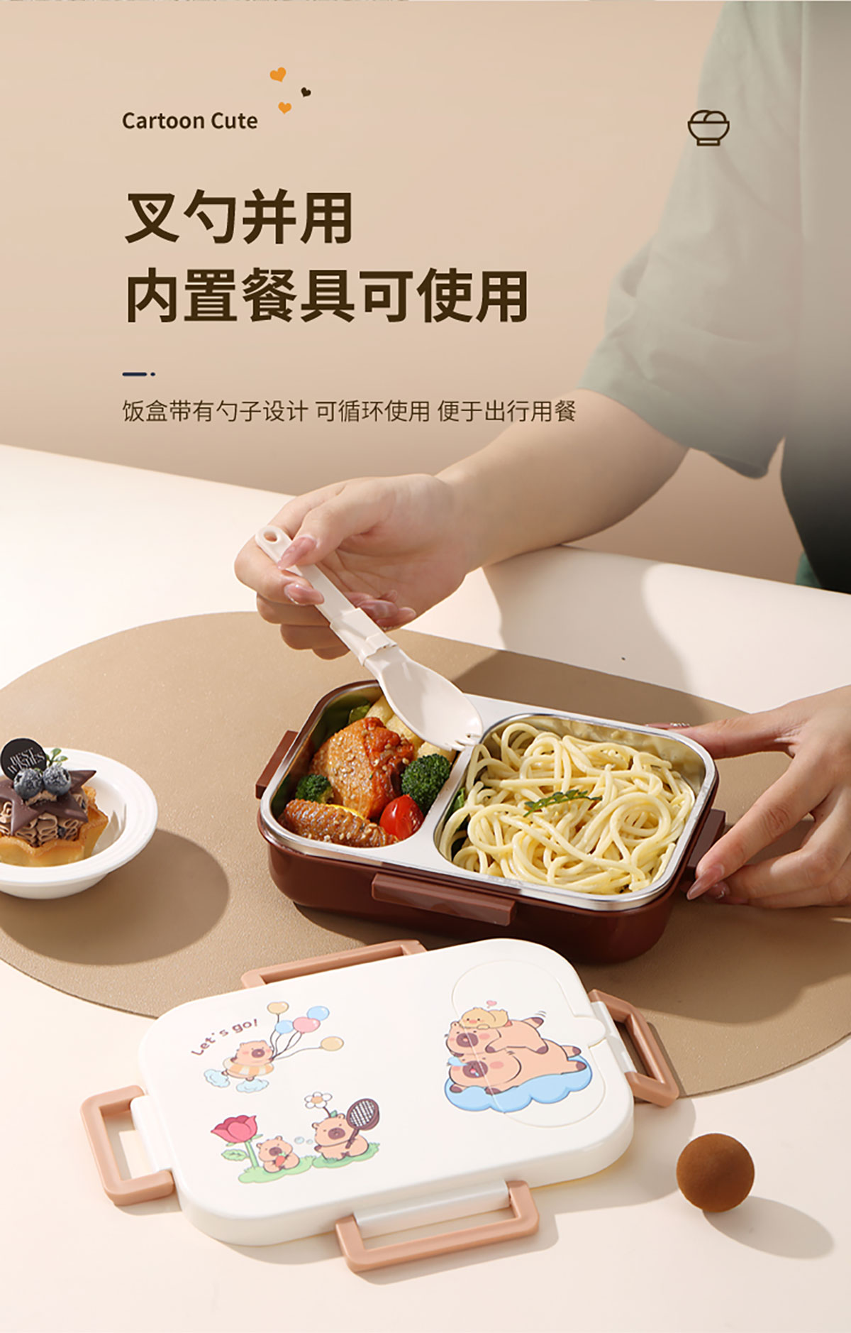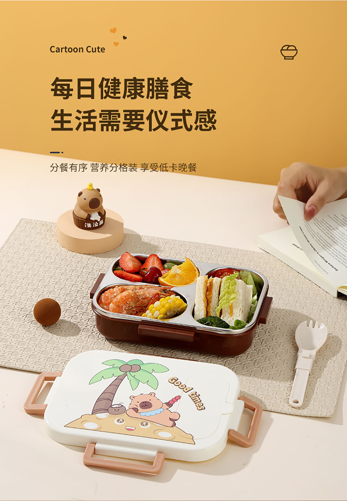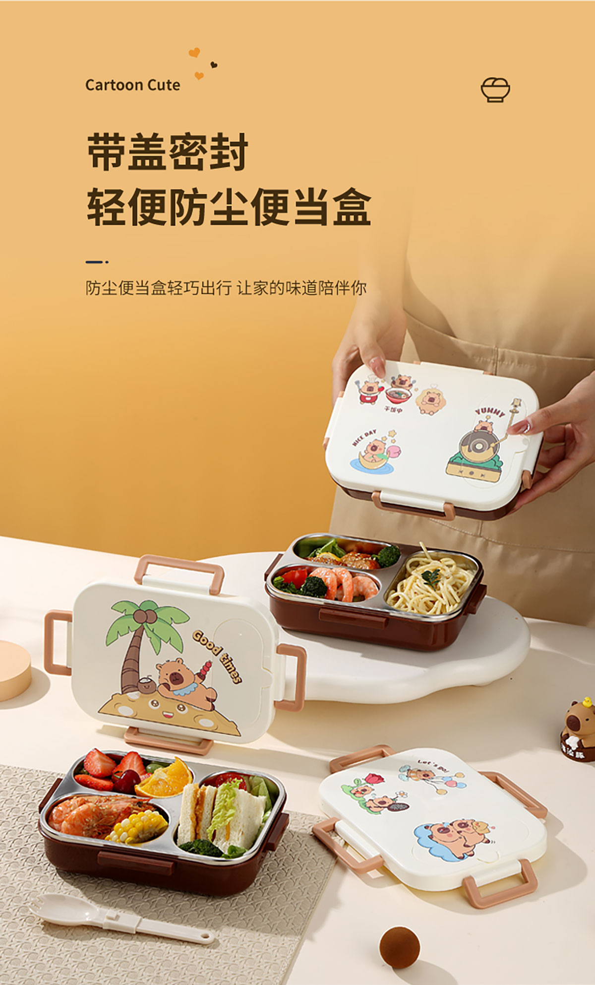 600ml UV獨立密封卡皮家族不銹鋼餐盒2格/3格 (配PP折疊湯勺)