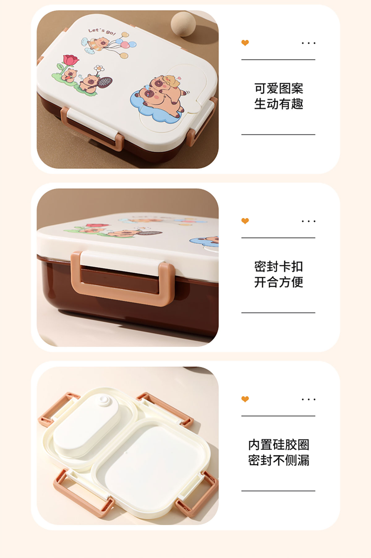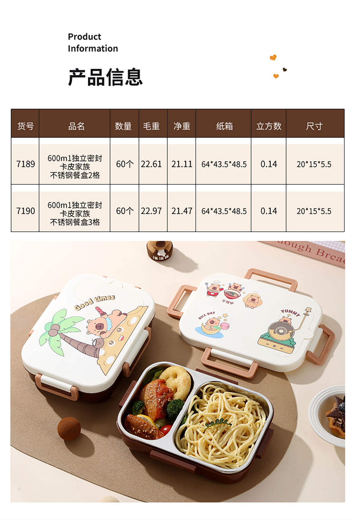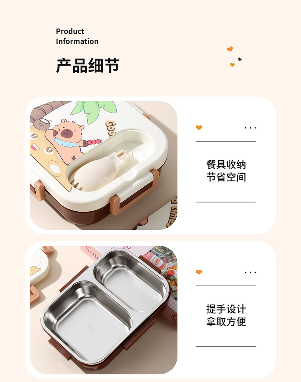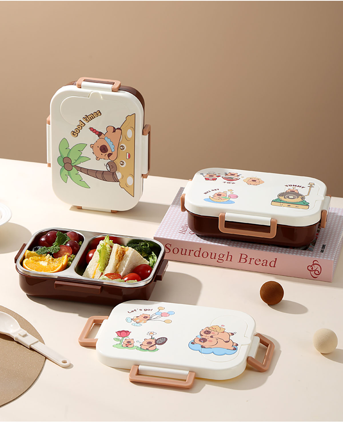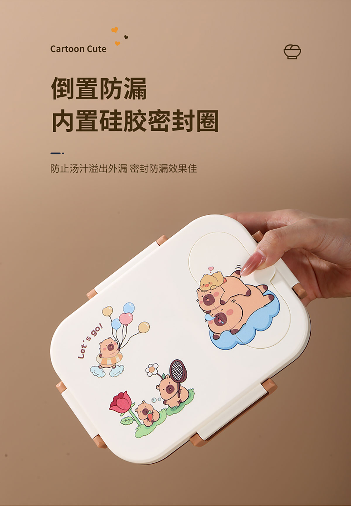 600ml UV獨立密封卡皮家族不銹鋼餐盒2格/3格 (配PP折疊湯勺)