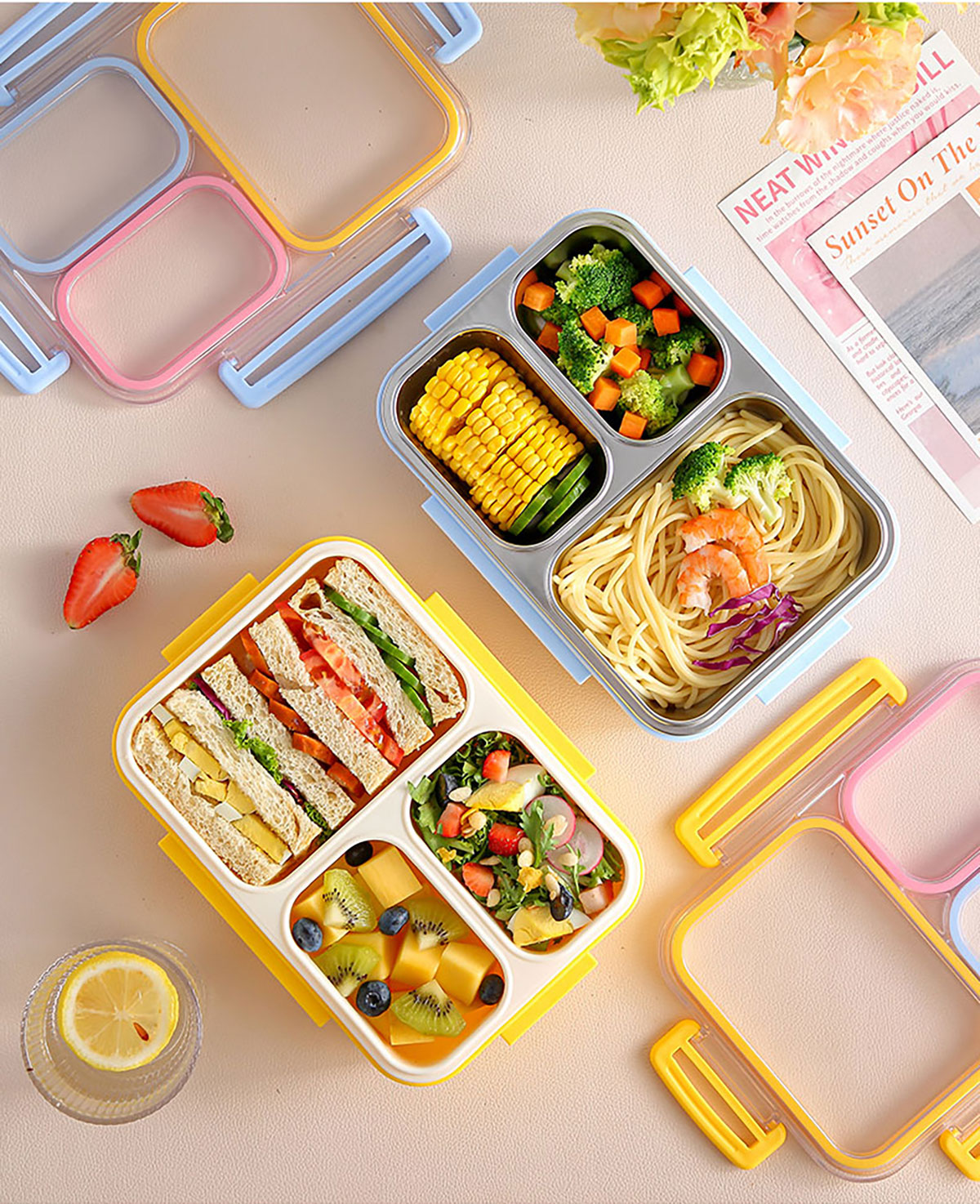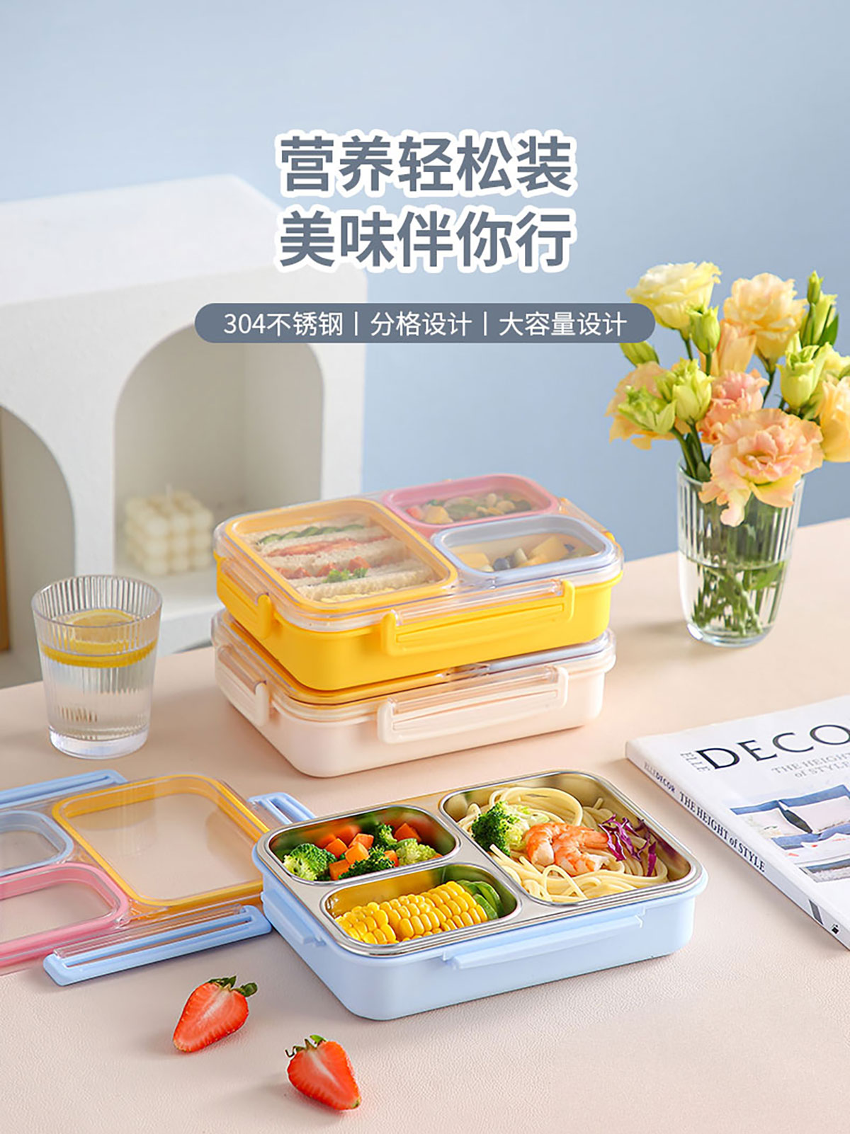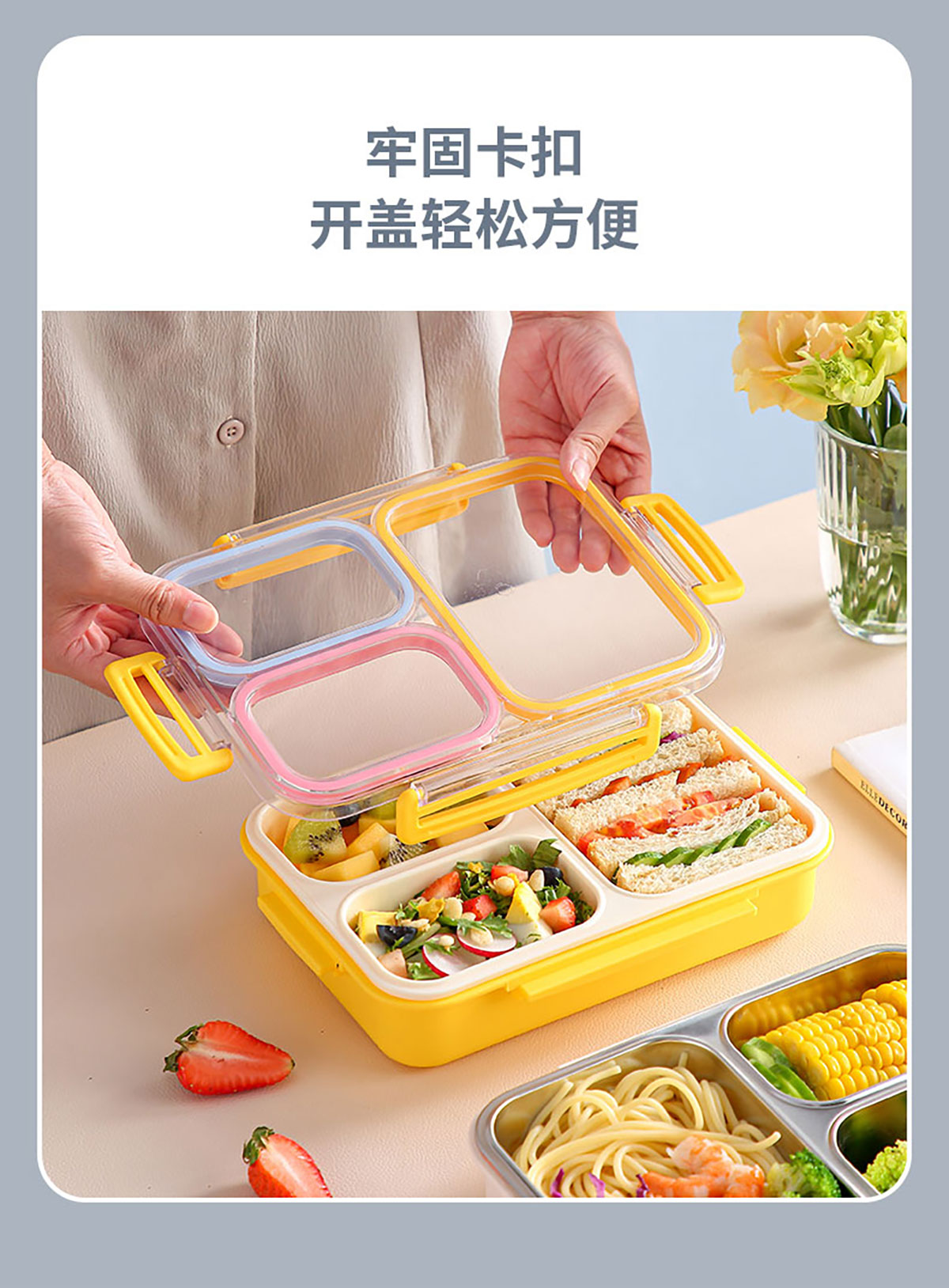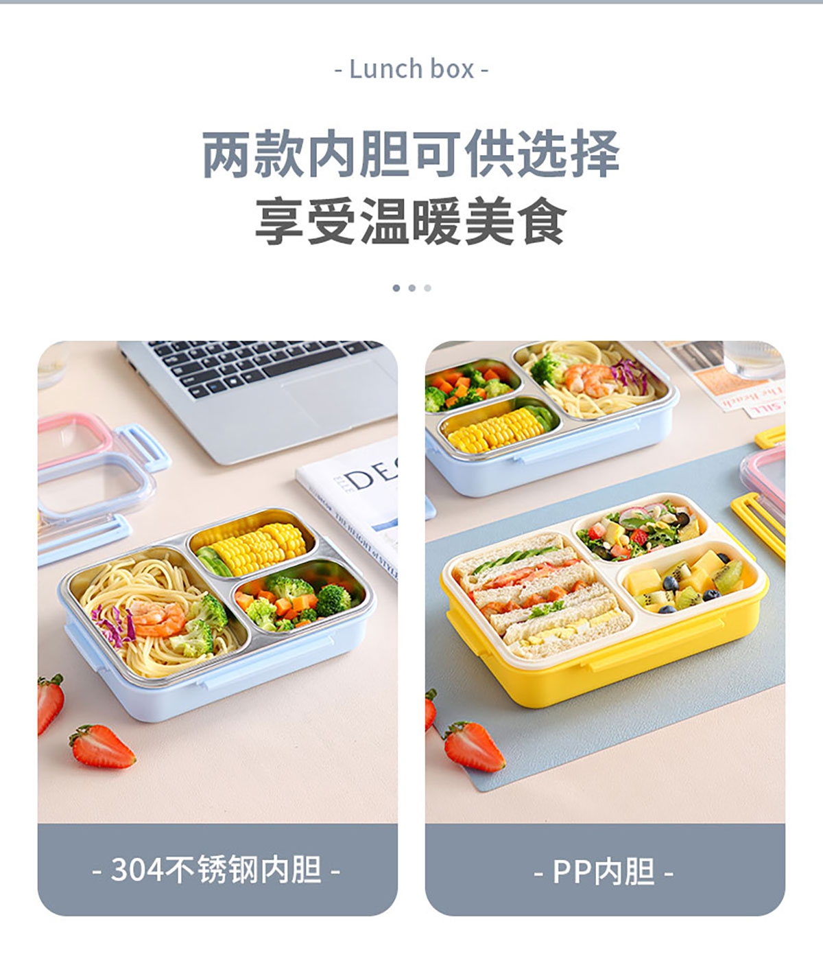 防串味三格不銹鋼飯盒820ml/PP款飯盒800ml