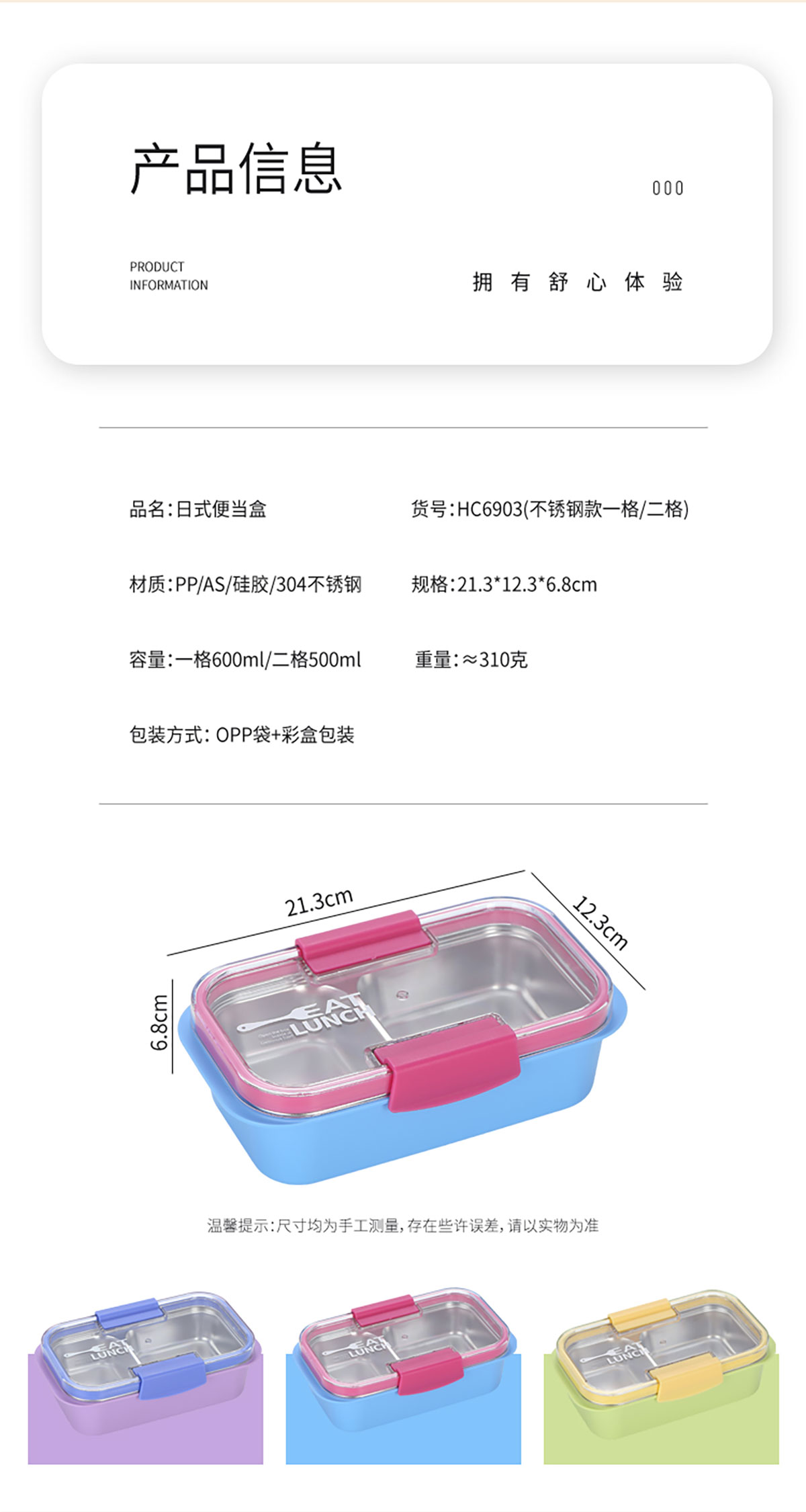 Size: 一格:213*123*68mm/600ml