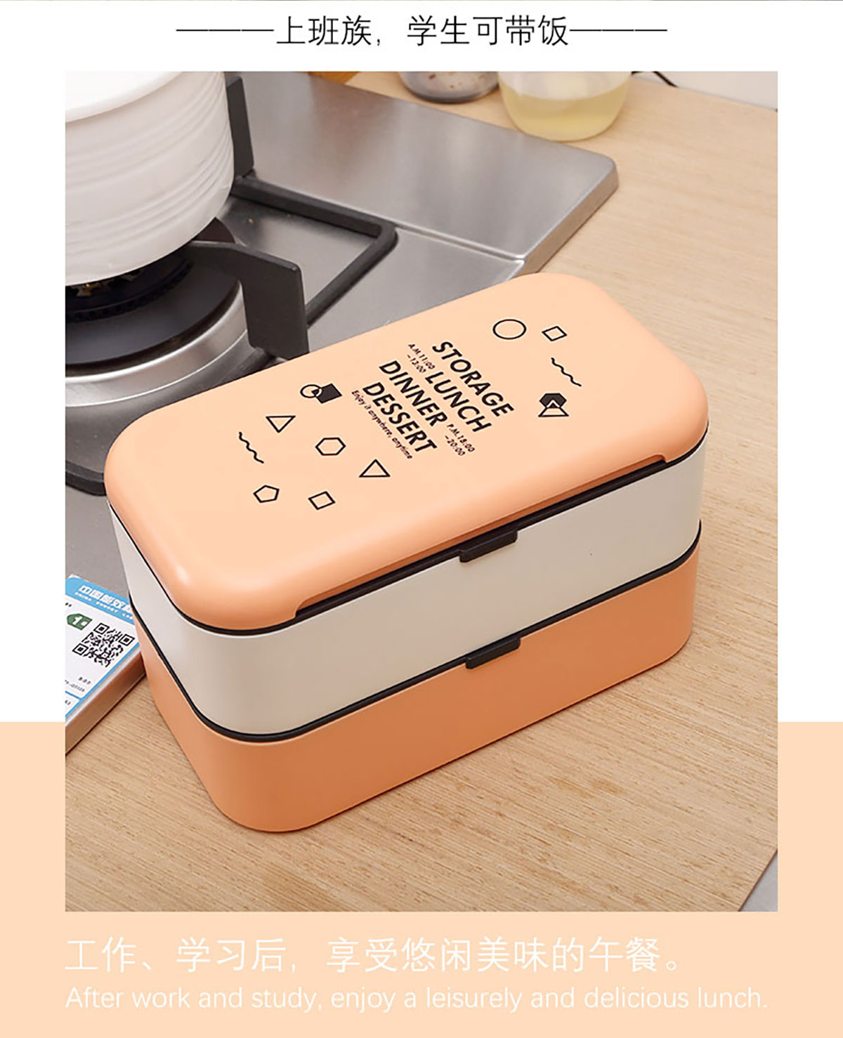 雙層綁帶密封飯盒1000ml